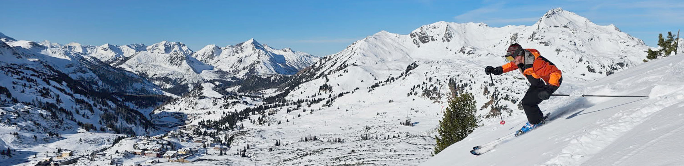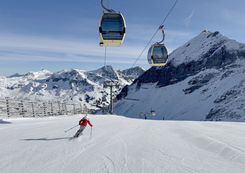 Obertauern Lodging: The claim to fame in the village of Obertauern is that every hotel is ski in ski out, which we believe is accurate among the 100+ lodging properties. Autoroute 99 passes right through the village, so skiers cross ski bridges to access both sides of the valley. You’ll find ski shops, restaurants, grocery markets, lining the main road. Obertauern as a ski village, with the major road passing right thru, is not quite as charming as Kitzbuhel or St Anton, but still very authentic and alpine with ski culture, après ski and a good vibe.