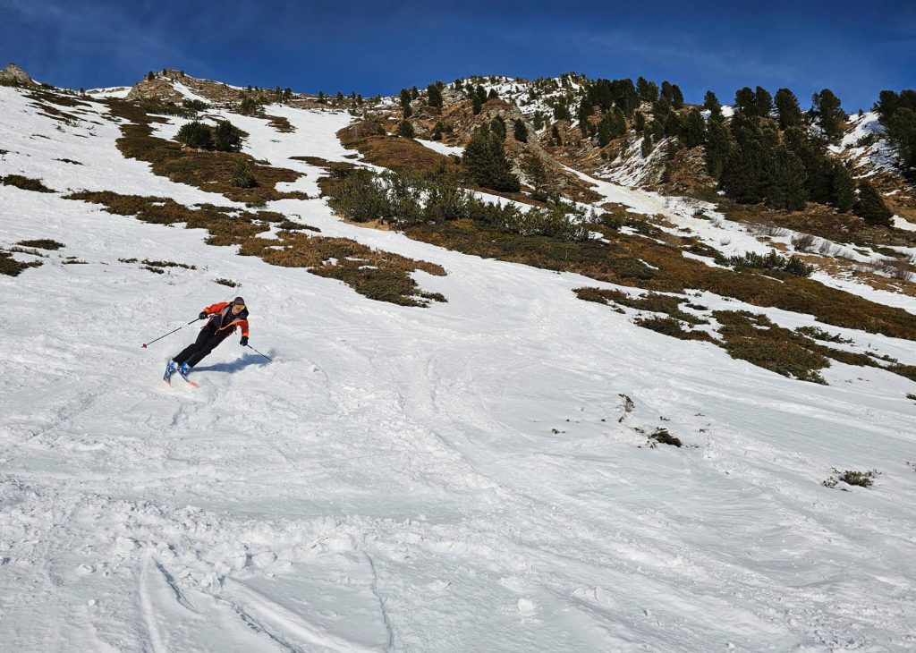 The two shortcomings to Obertauern: the high base elevation does not allow for very long trails and big vertical drops that other Austrian resorts offer. With its high elevation, there is also very little tree cover or trail definition on a stormy, snowy, cloud day (in other words – white out).