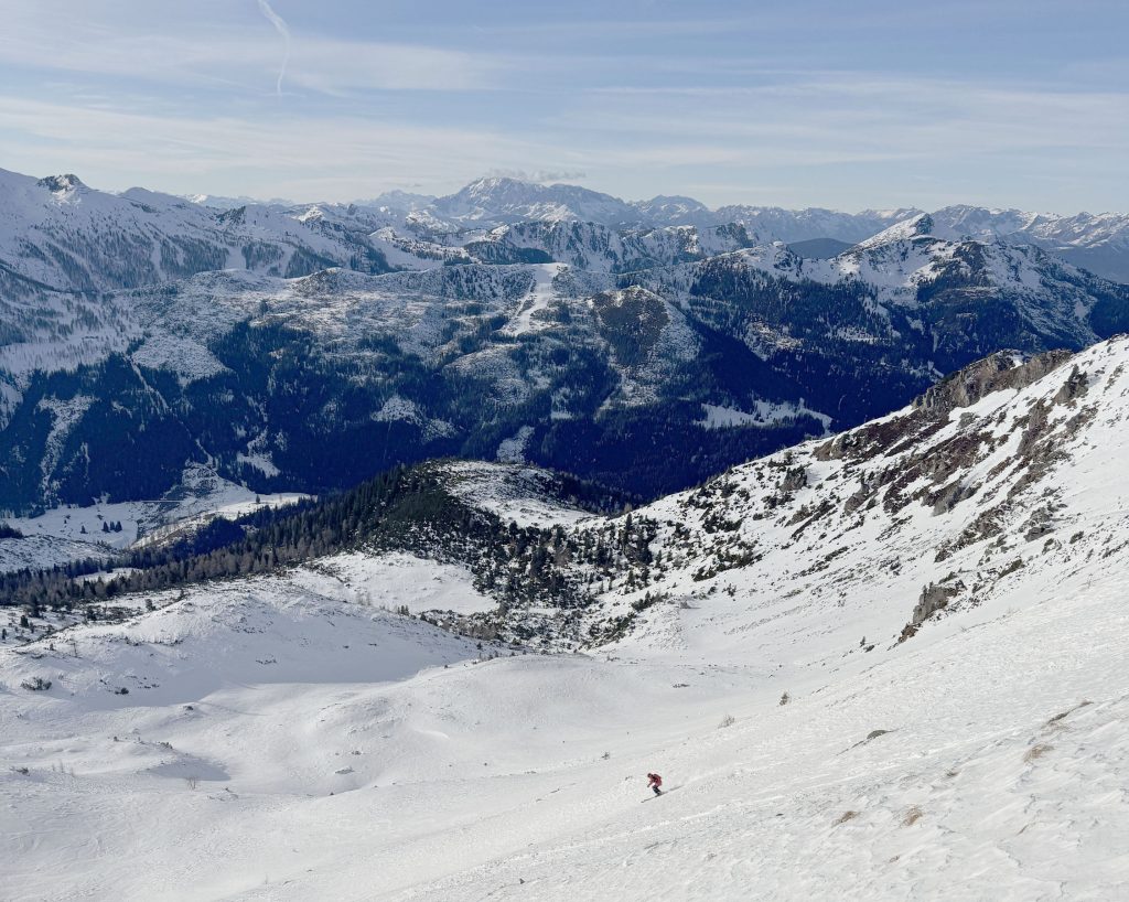 For free-riders, Obertauern has vast open space for exploring just off the pistes. With a guide, a Bergführer, you can drop into nearby valleys ski touring for a cool alpine experience. We had a fun freeride offpiste adventure with guide Marcus from Obertauern ski school. Fun fact, Obertauern hosts the annual Freeride World Tour Challenge Finale in March on its wild terrain.