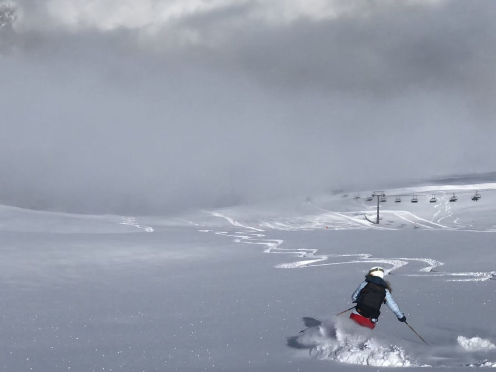 Versing area furthest left on the trail map is a sunny bowl served by another modern 8-person Gondola. This big open bowl is not steep, its undulating and fun with two marked trails plus one ungroomed marked “ski route” plus lots of fun off-piste within view of the gondola and trails.
