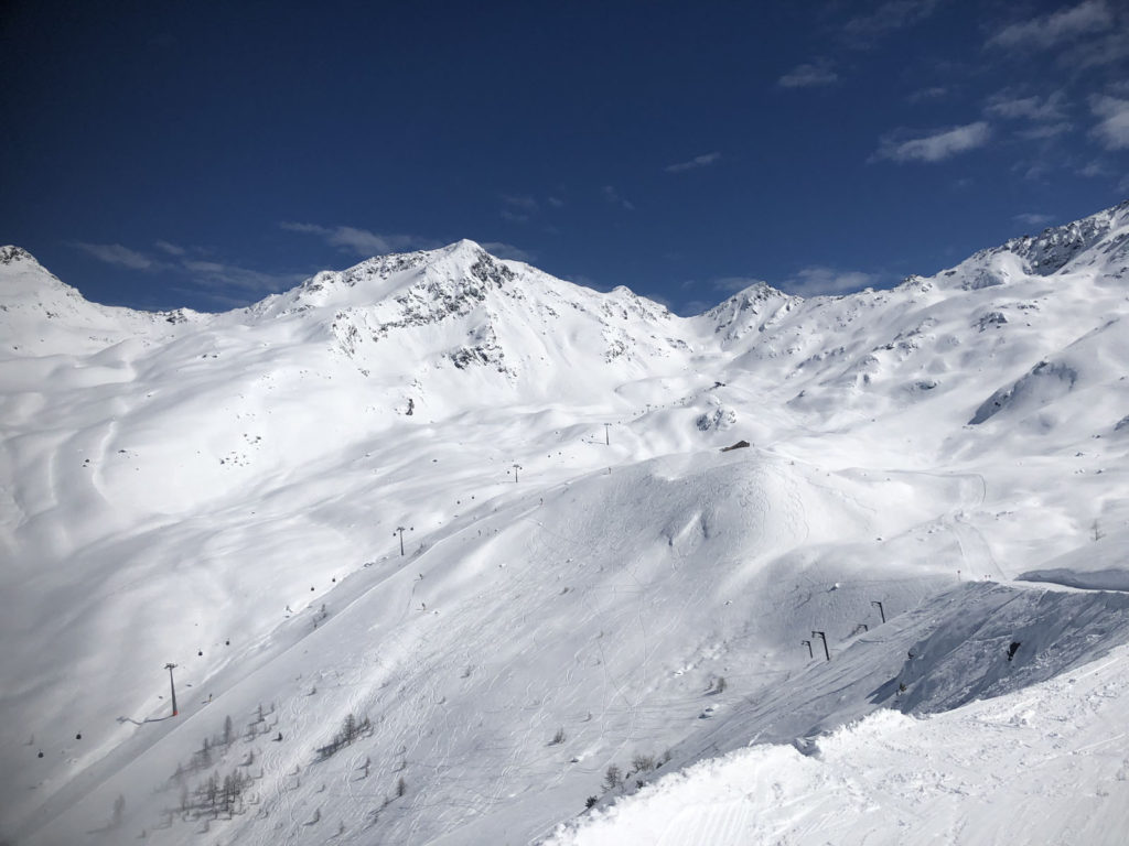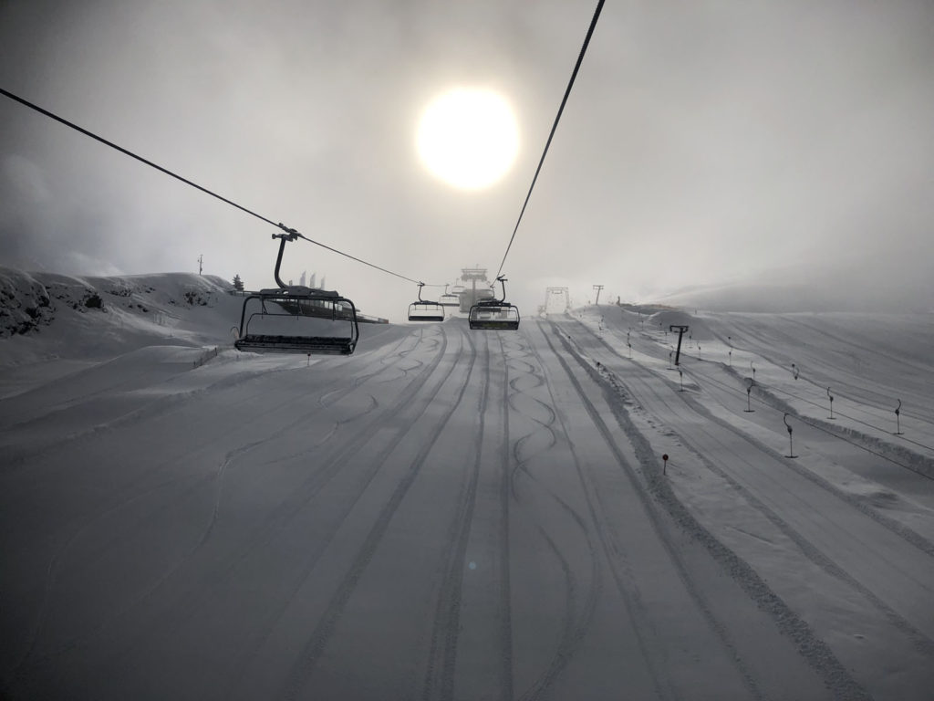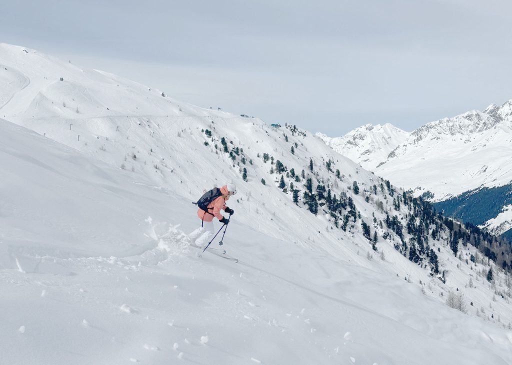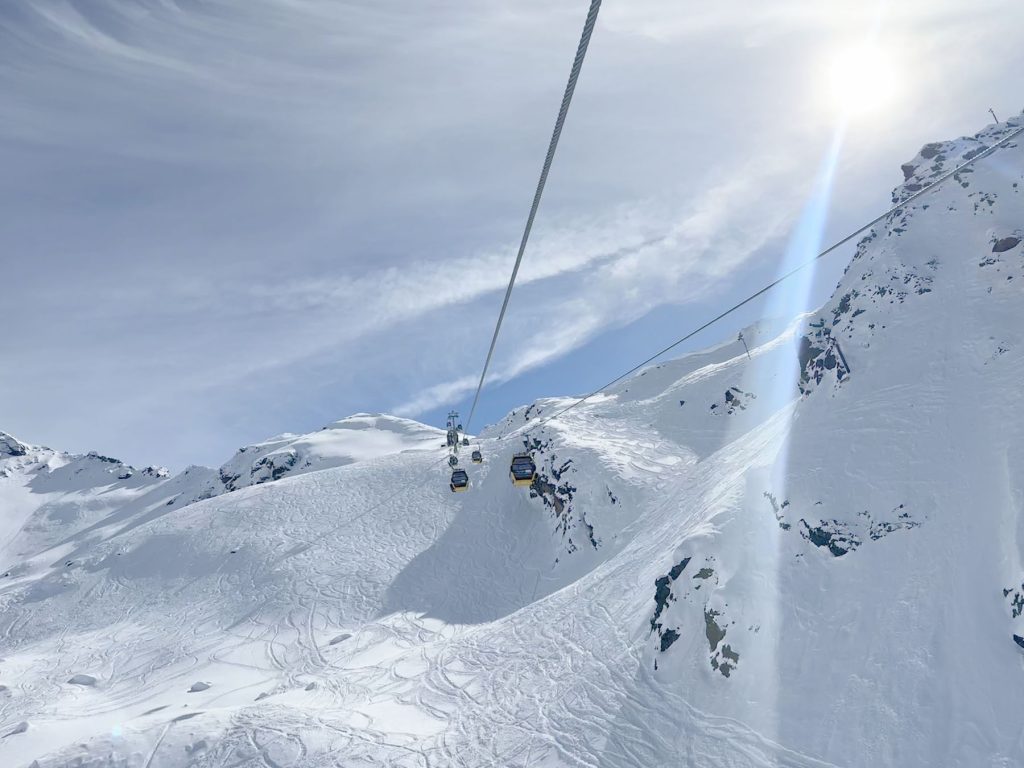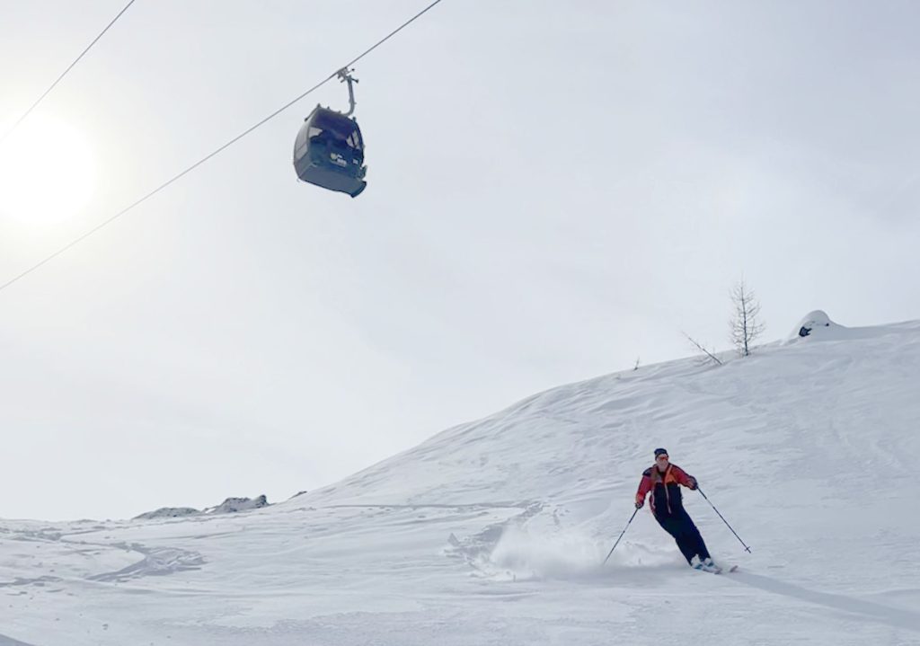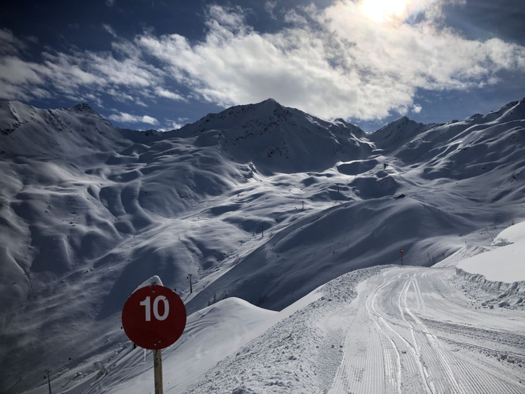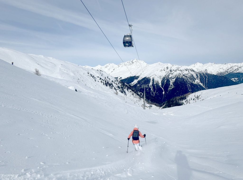 See’s long ski trail #1 winds back and forth at the end of the day to the village of See, its super fun and a full 5,000′ vertical if you start from the Furglerblick summit. Or you can download the Medrigjoch gondola, which might be prudent for intermediates and beginners on a busier ski day, or in spring when the snow becomes too warm at lower elevation.