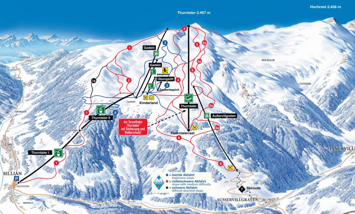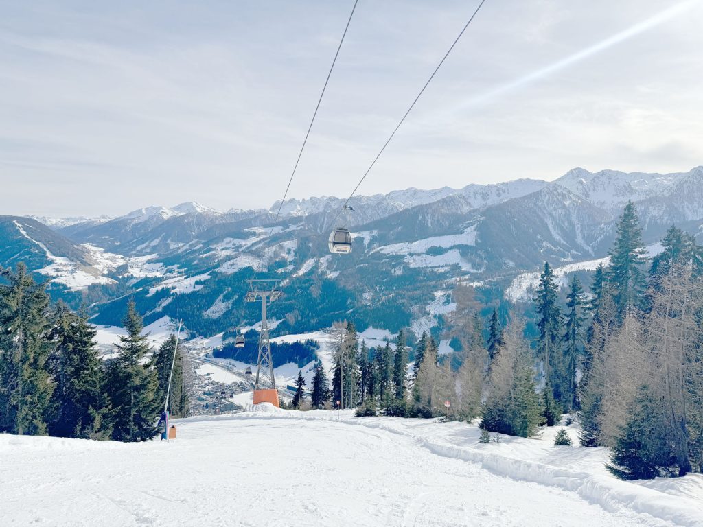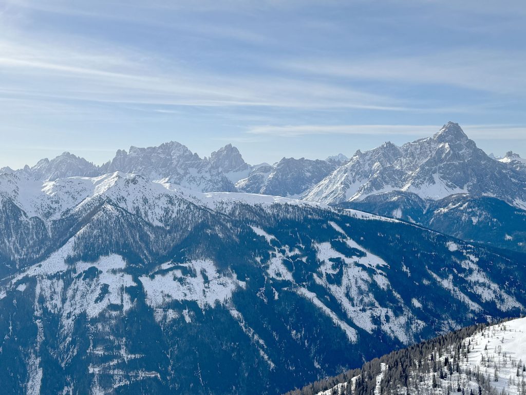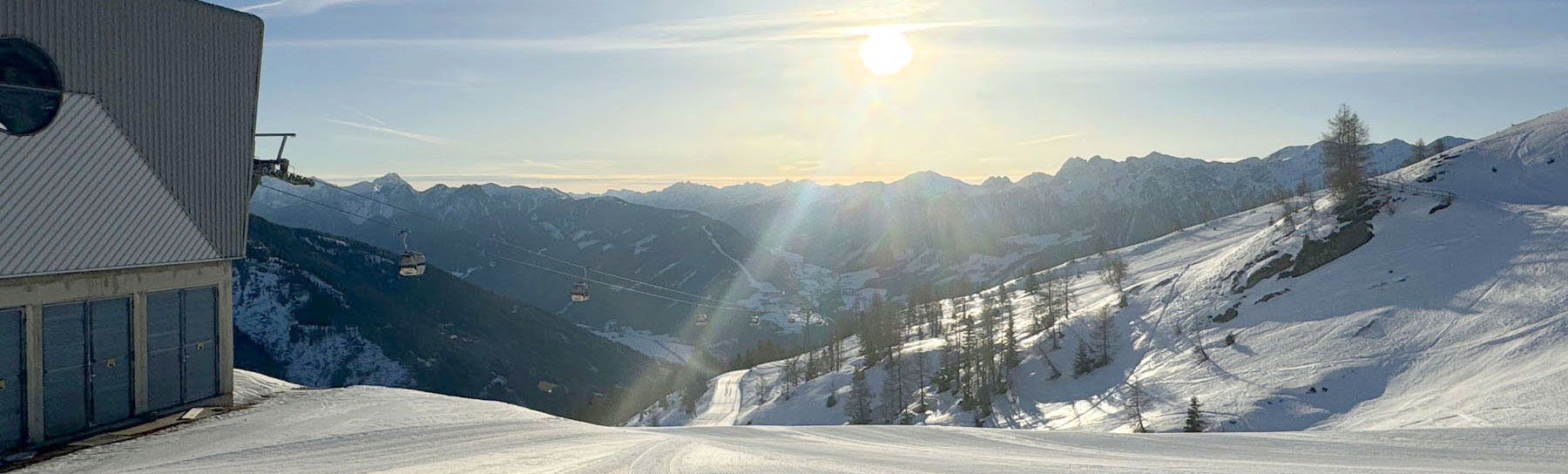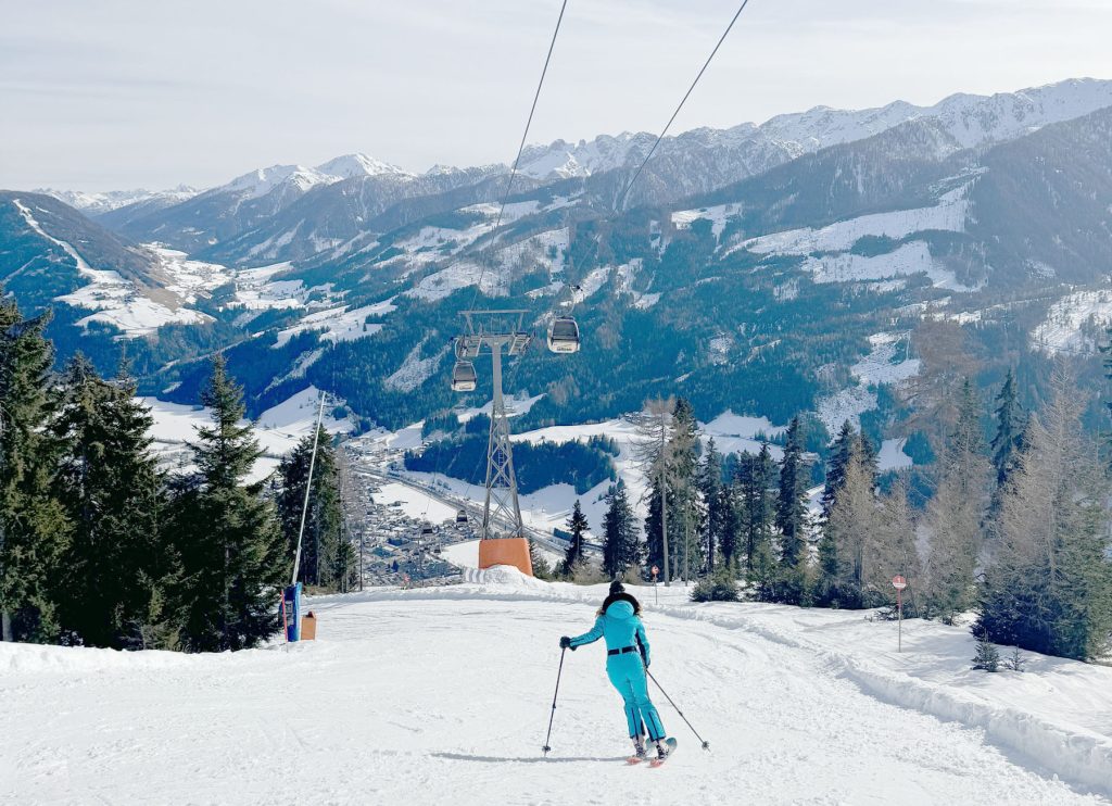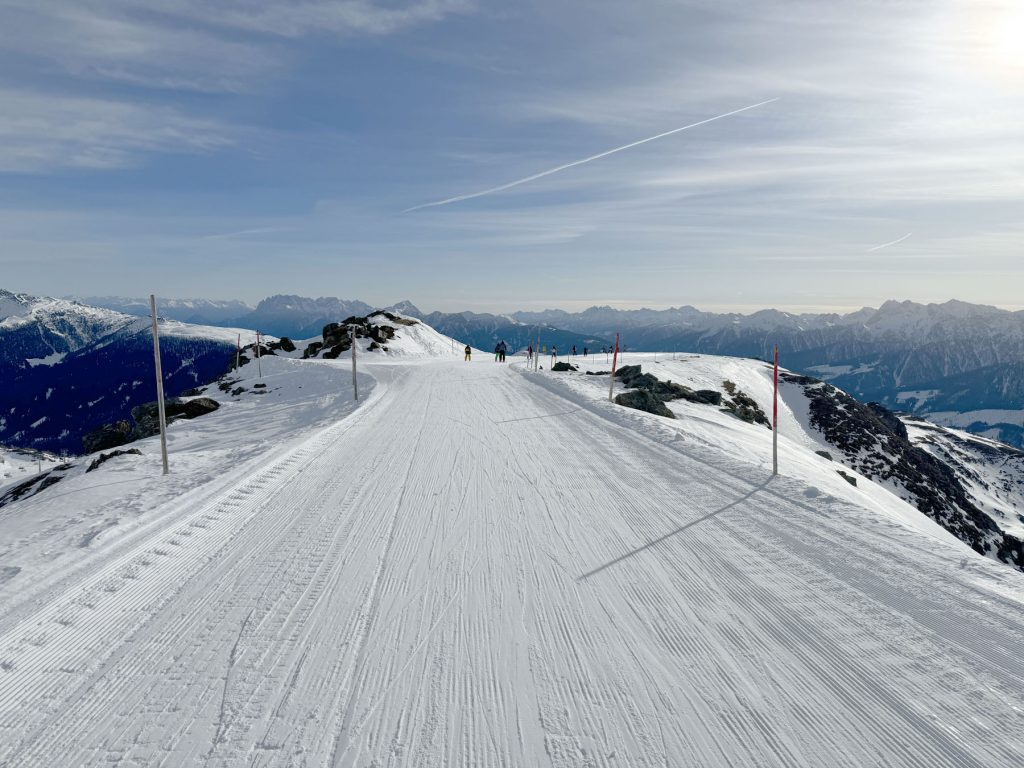 From the village of Sillian, you may only see one ribbon of snow dropping down to the base. Ride the long Thurntaler two-stage gondola up 3400’ vertical feet (1000-meters) and you arrive at a grand sunny snow-covered peak with a wide variety of skiing.