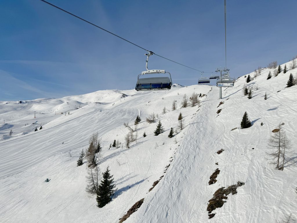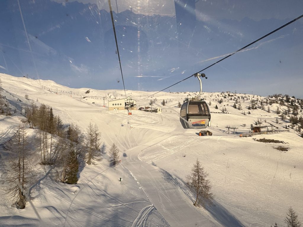 This six-pack is a key lift accessing Sillian’s best upper mountain terrain. At the summit, the views are phenomenal of Italy, the jagged Dolomites peaks, and the surrounding Alps. Its breathtaking, for picture taking. We took several laps (1,500’ vertical each) on Trails 1, 4 and 5 here, very well groomed with soft carvable snow despite how sunny and warm it can get here in the South East Tirol.