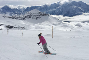 high altitude, high adrenaline and it sprawls. Mont Fort is the highest peak at 3330-meters, 10,925′ and the next peak – Mont Gelé has no prepared slopes- expert only! The views of nearby Mont Blanc are splendid.