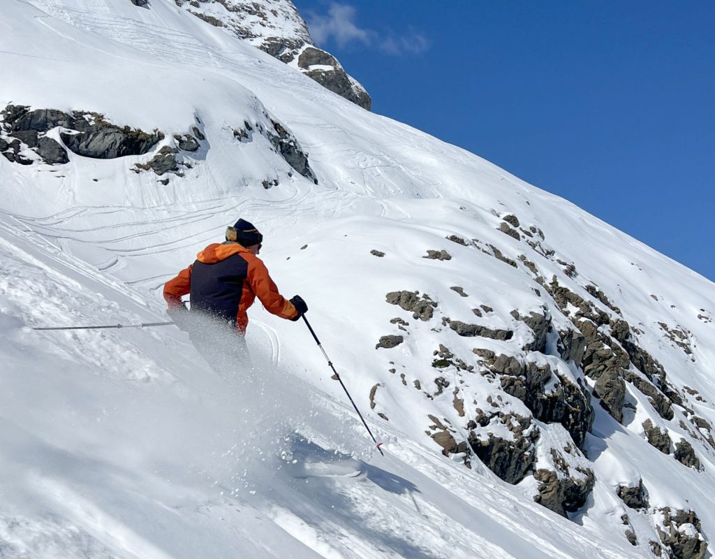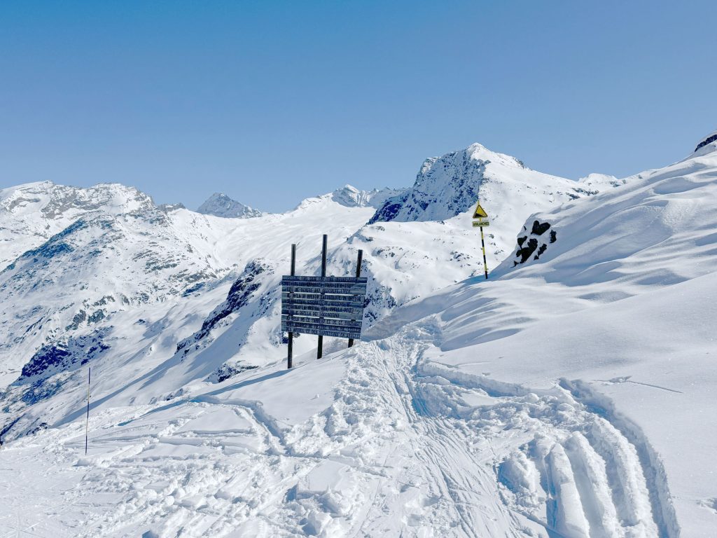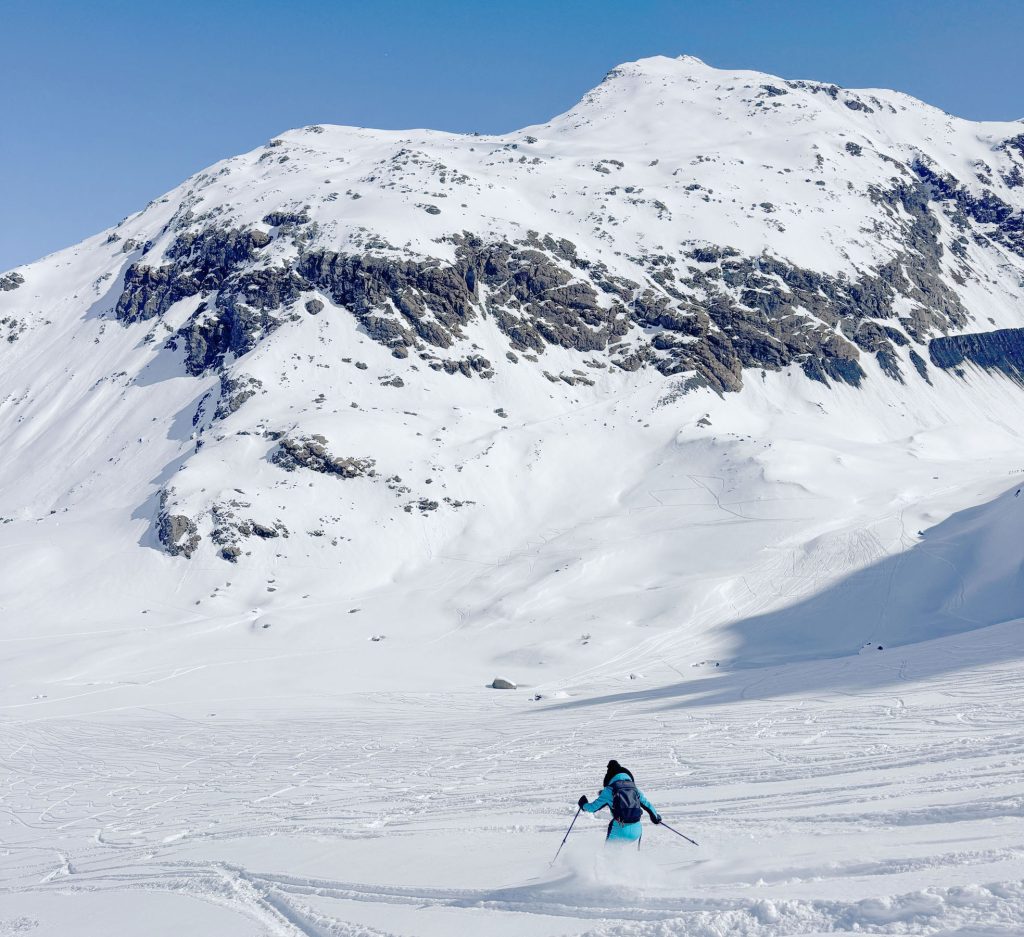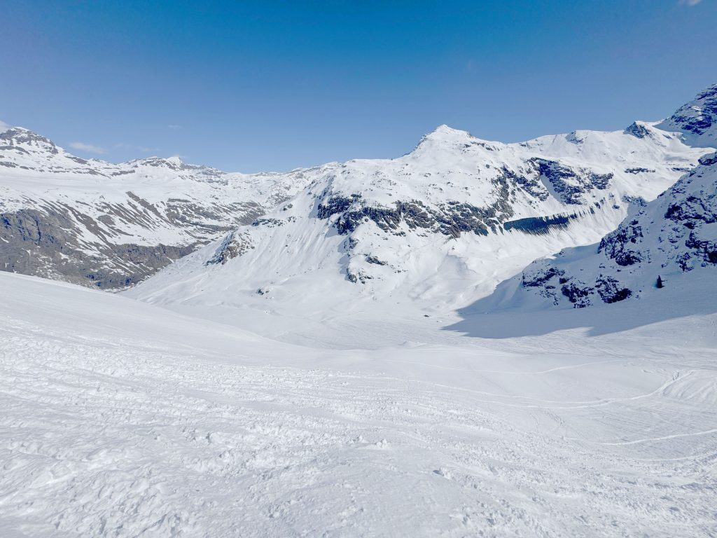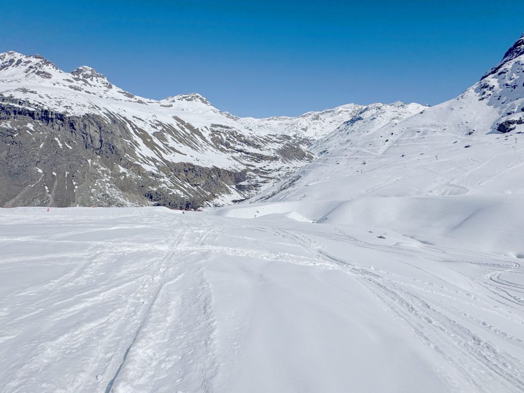 Bonneval is reputed for its vast Freeride Terrain among those in the know, so hire a guide to explore the off-piste terrain. With a Mountain Guide you can reach amazing steep chutes, glacier caves and more. We enjoyed exploring the easy-to-reach off-piste, however much of the snow bowl terrain had been skied the week prior during their Bonneval Freeride competition. The French skiers explore the off-piste terrain more avidly than the Swiss or Austrian, so powder days, the fresh tracks go quickly.