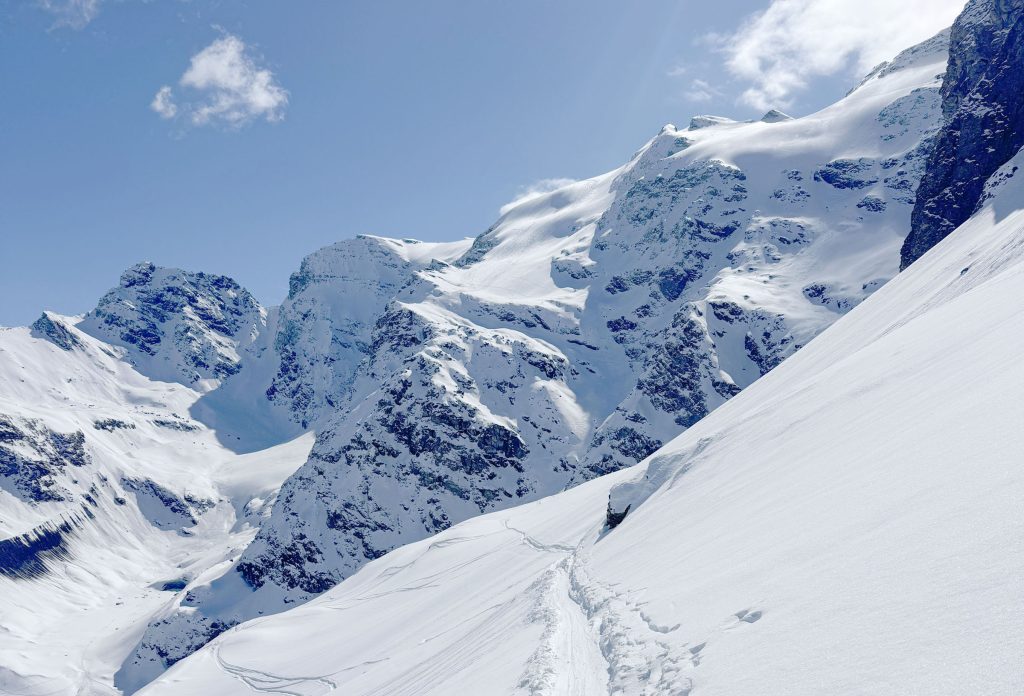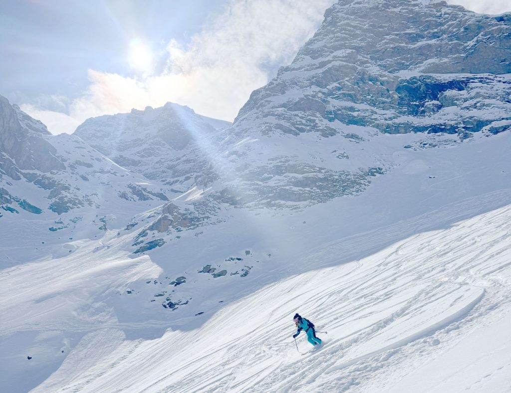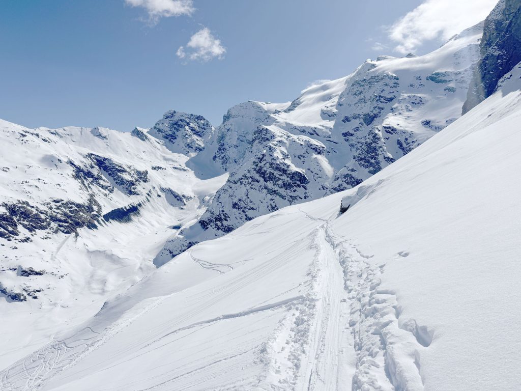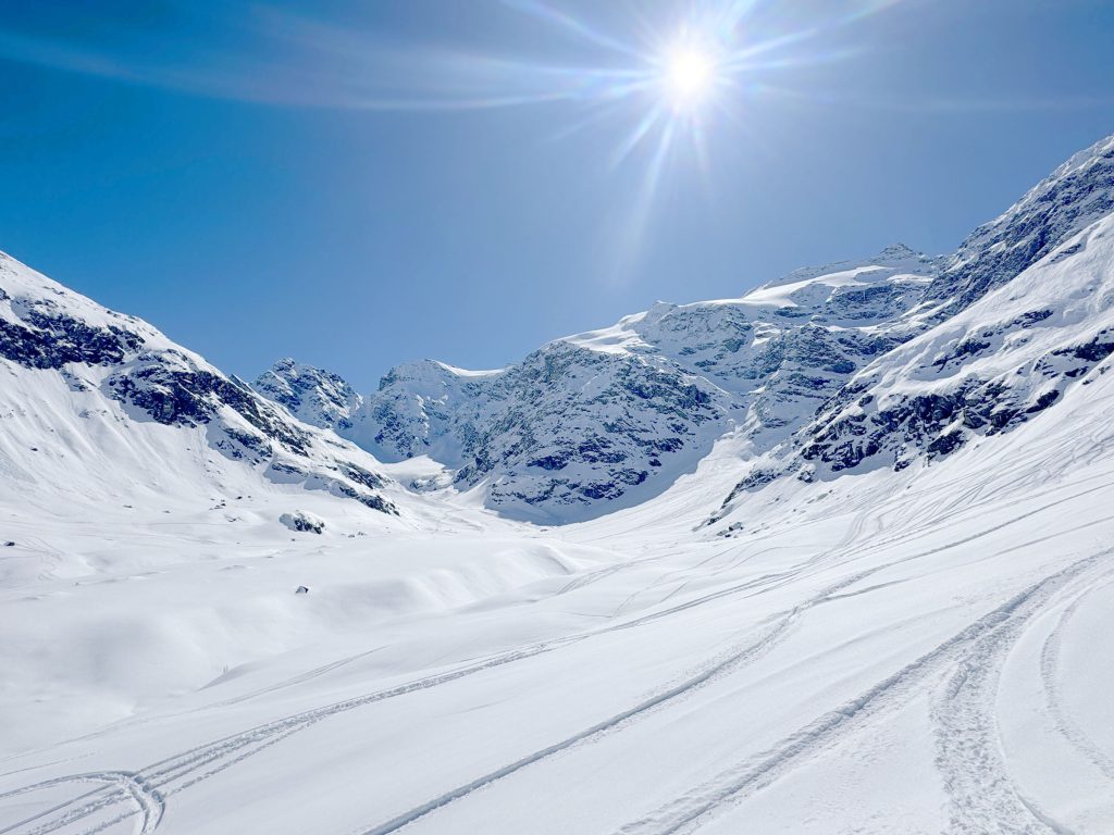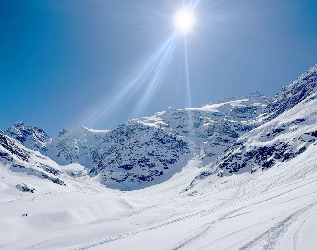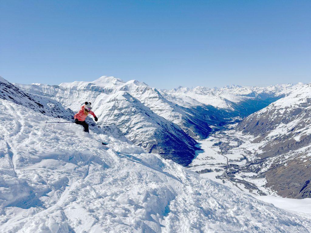 Bonneval is reputed for its vast Freeride Terrain among those in the know, so hire a guide to explore the off-piste terrain. With a Mountain Guide you can reach amazing steep chutes, glacier caves and more. We enjoyed exploring the easy-to-reach off-piste, however much of the snow bowl terrain had been skied the week prior during their Bonneval Freeride competition. The French skiers explore the off-piste terrain more avidly than the Swiss or Austrian, so powder days, the fresh tracks go quickly.