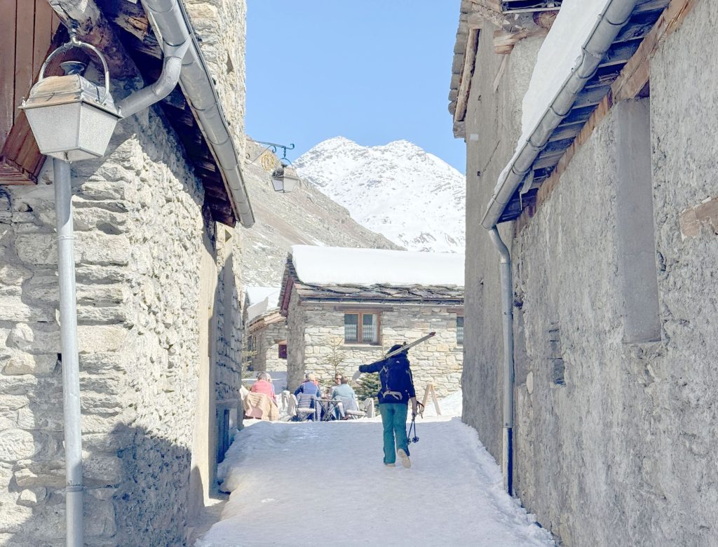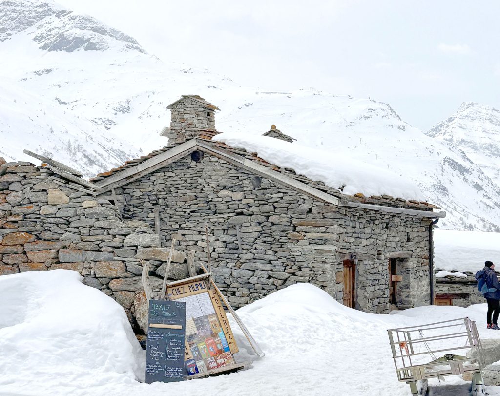 Bonneval ski area has just one on mountain chalet restaurant, tucked below the trails mid-mountain – called Le Criou – serving classic French cuisine, mountain salads, Croziflette, the BEST housemade fries, and a menu du jour. At the base of the slopes, in the “newer” village, are several lunch spots – Howard’s and La Marmotte. Apres ski is very tame here, if that’s what you quest, go to bustling nearby Megève, 2 Alpes or Alpe d’Huez.