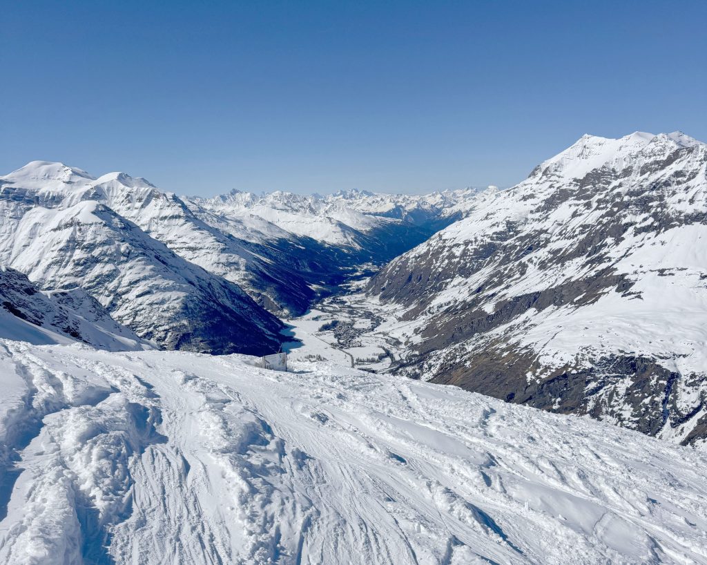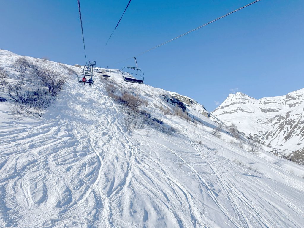 With just 6 ski lifts at Bonneval sur Arc, 3 fixed grip quads and a few old poma lifts, this humble but friendly ski area has just a dozen prepared pitstes, but they are long, well-groomed and interesting. The highest quad brings you to 3000-meters, 9842-feet. Bonneval has bizarre lift hours, its so “French”. When we visited (2025) the base chair opened at 9:10, and the upper lifts open 20-30 minutes after. Its that kind of rustic relaxed ski place, mostly local skiers and return vacationers. When we visited in 2025, lift tickets were only $32 Euro per day!