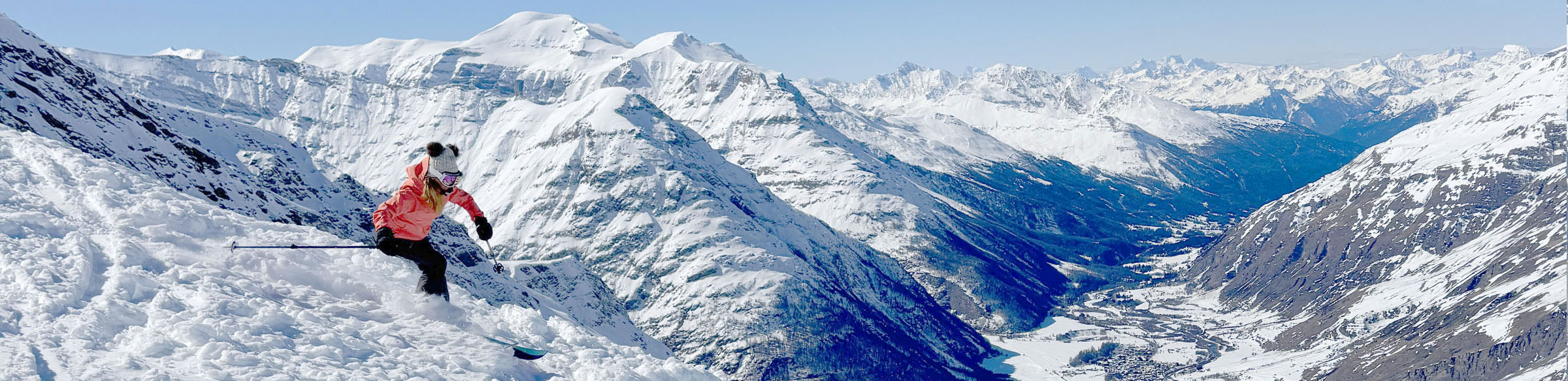 Bonneval sur Arc ski area is a high-elevation remote ski area deep in the Rhone Alps. This is known as the Haute Maurienne region. This amazing alpine valley is home to 5 French ski resorts, all worthy, fun, uncrowded, and affordable. Bonneval is a unique and beautiful canyon, the end of the road, with steep Alps encompassing the village and ski area. As the crow flyes you are just a few km from Val’D’Isere and not far from Tignes, La Plagne and Les Arcs. In fact, a summer road from Bonneval connects to Val D’Isere – completely blanketed in snow in winter. In these Haute Maurienne Alps, you are also right on the Italian border.