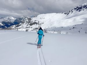 AT Skiing! A final note on backcountry, sidecountry, skiing and ski touring, which has become all the rage. Alpine touring skis have improved dramatically from old telemark skis, and three pin binding boot set ups. I got my first alpine touring skis, for the occasional side country jaunt into a powder field, or when we hire a mountain guide in The Alps to explore “off-piste”. This is a whole new world with bindings that adapt from alpine (downhill) fixed binding setting, to uphill climbing setting with removable skins. See my “Learn to AT Ski” blog for more on how liberating and exciting alpine touring is, with the right gear!
