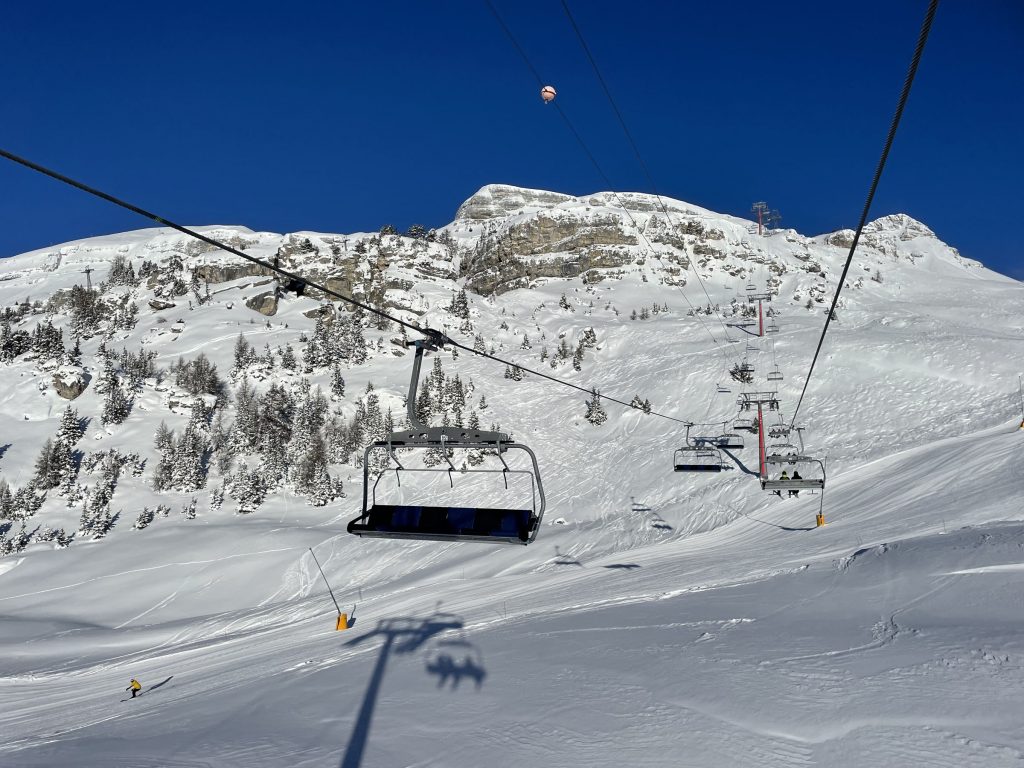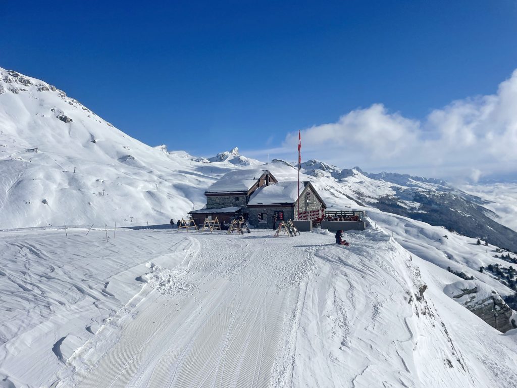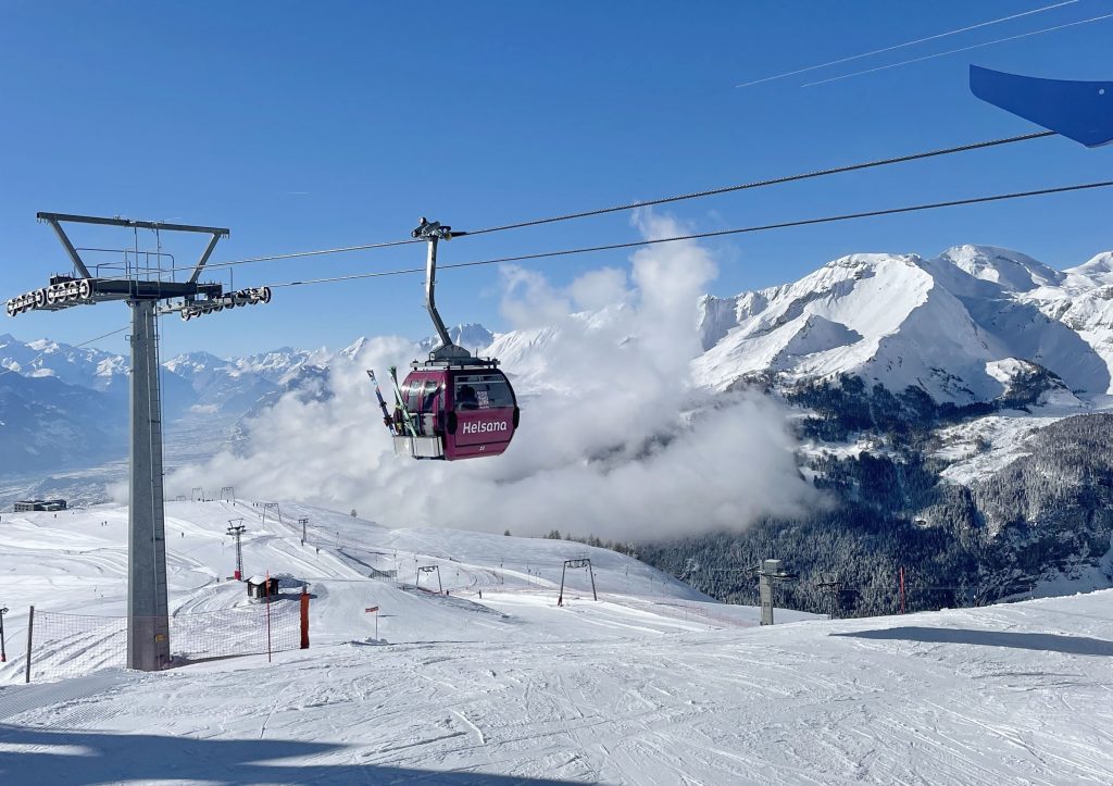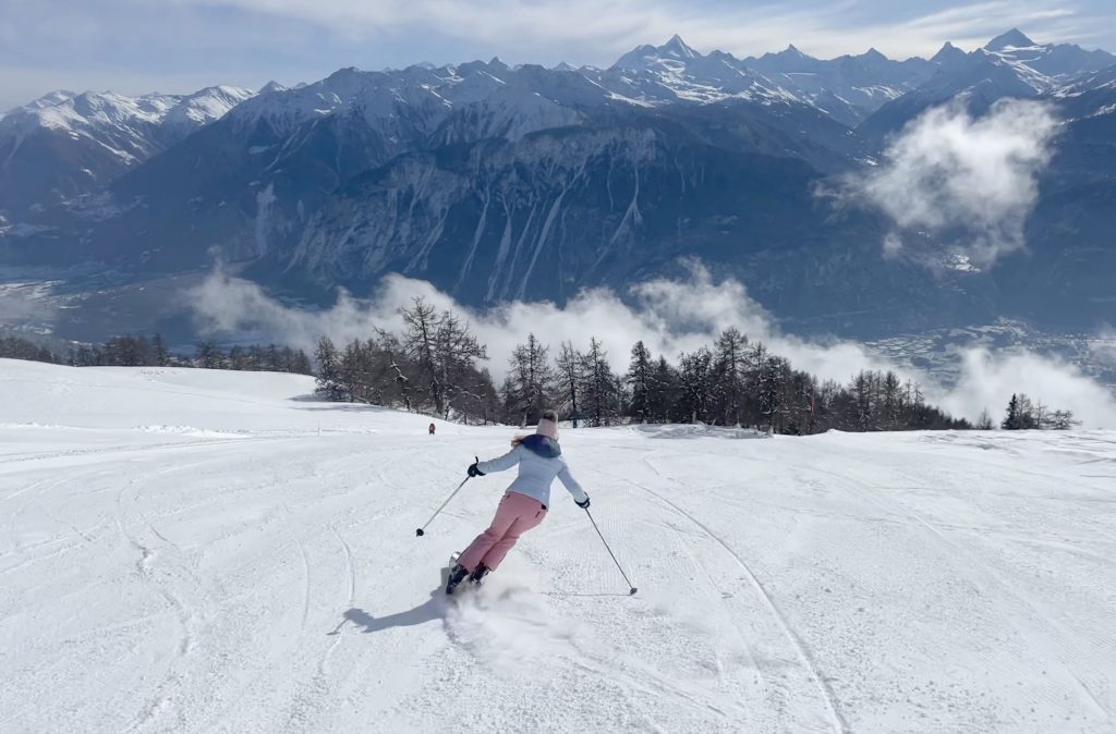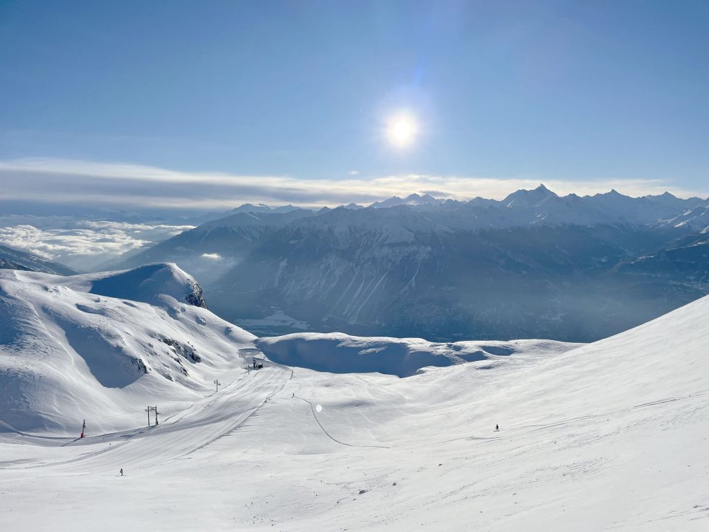 Crans Montana ski resort in Switzerland‘s beautiful Valais region offers skiing on a sunny high plateau, with 34 lifts reaching up to 3000-meters, with amazing views of the surrounding Swiss Alps.