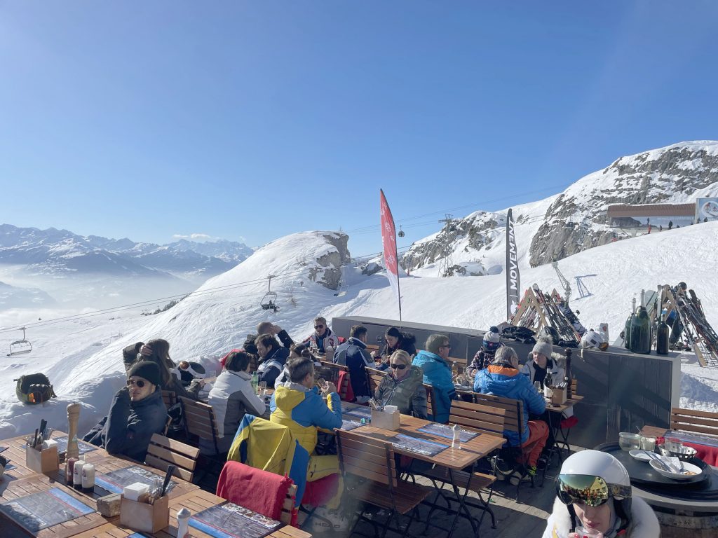 Outside the Hotel is a mountain view terrace where you can play with kids in the snow. Just a short walk or shuttle drive away is the Snow Village family learn to ski area by Crans Montana’s famous golf course. It’s a perfect plateau and setting for beginners and young ski families.