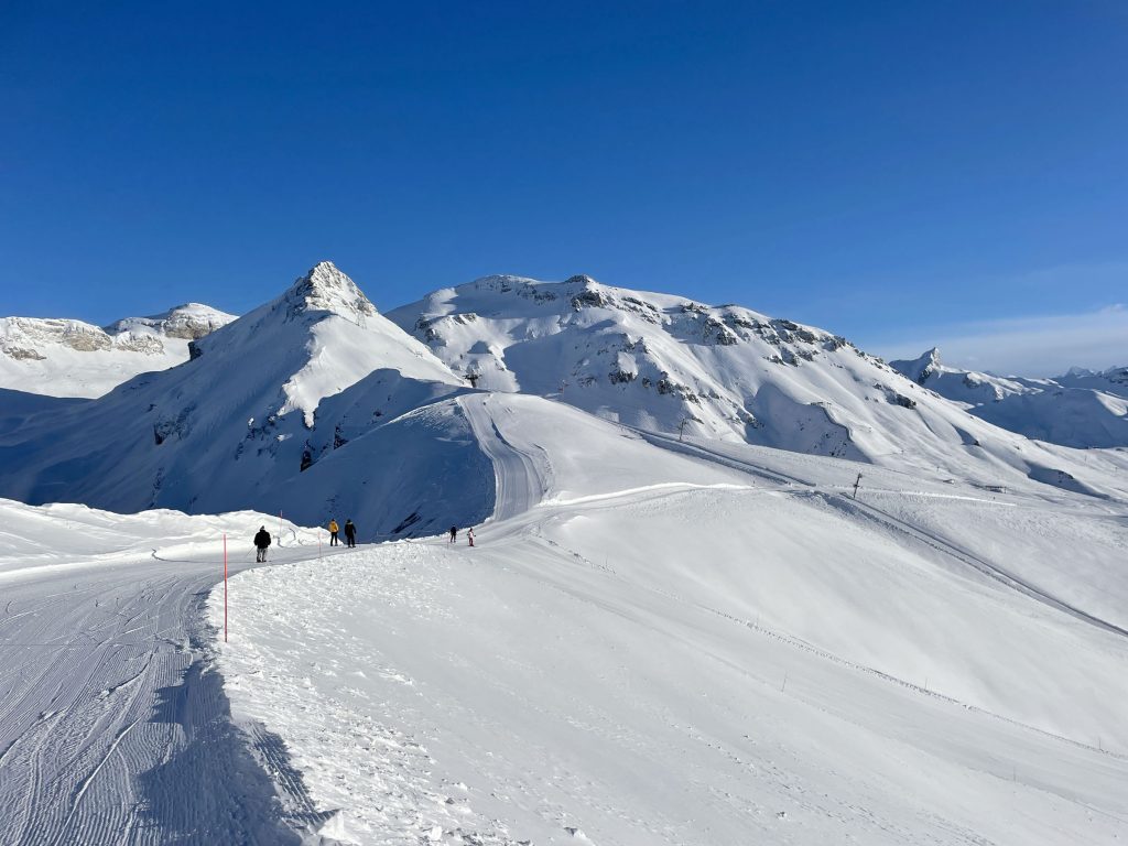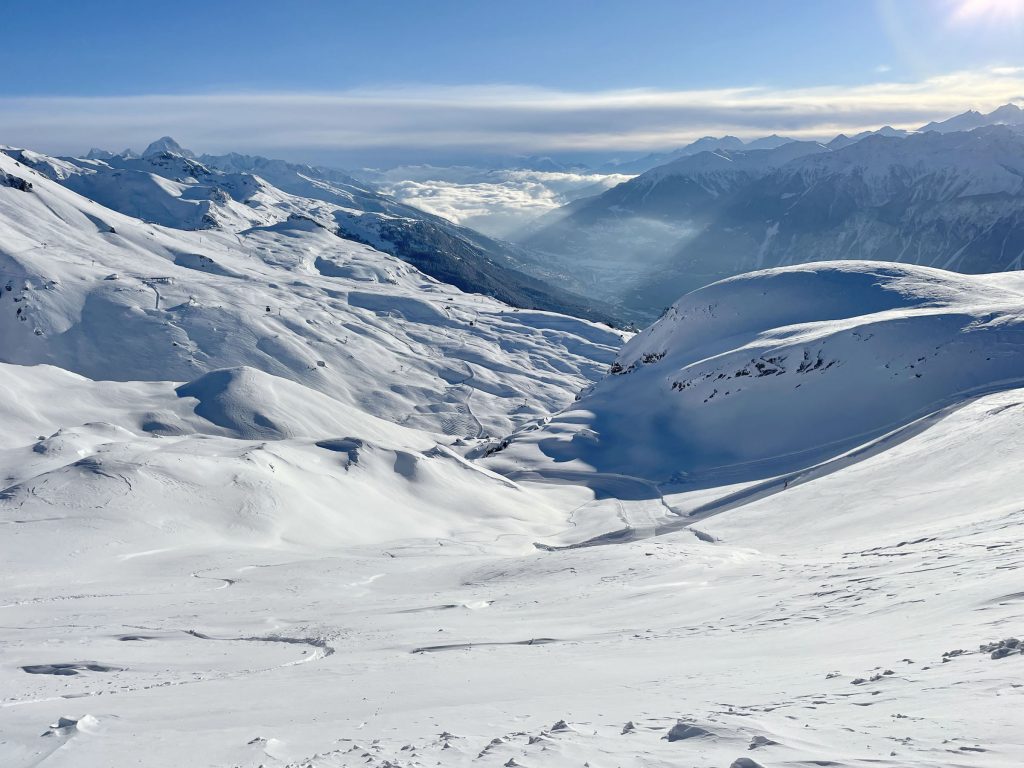 Crans Montana is a major ski resort in Valais to visit on a Swiss ski safari including neighboring Anzère, Grimentz Zinal, and other smaller family ski areas in the Rhone valley.