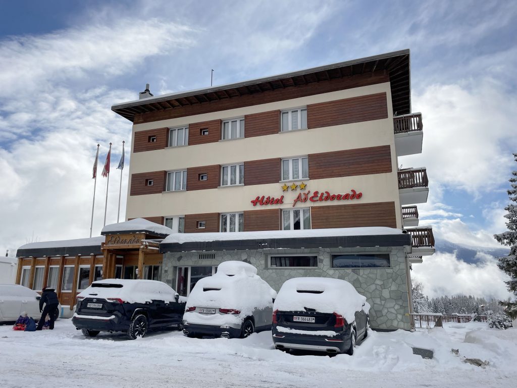 Hotel Ad’Eldorado is family-friendly for your Swiss ski trip, affordable, given how chic and pricey Crans Montana can be, compared to the 5-star Crans Ambassador for example.