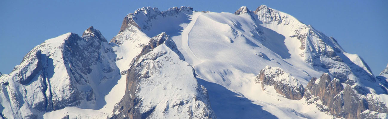 The most spectacular skiing in the Dolomite Super Ski Region is Arabba and the Marmolada, a long high elevation run reached by a three stage Cable Car to 3,342-meters, 10,965′. This peak, Punta Rocca, offers a panoramic summit, and a long descent on the Bellunese, 1,000-vertical meters (3,200’) down the Marmolada Glacier to the Fedaia Pass. The skiing around the rest of Arabba is sprawling from Porta Vescovo to Passo Pordoi.