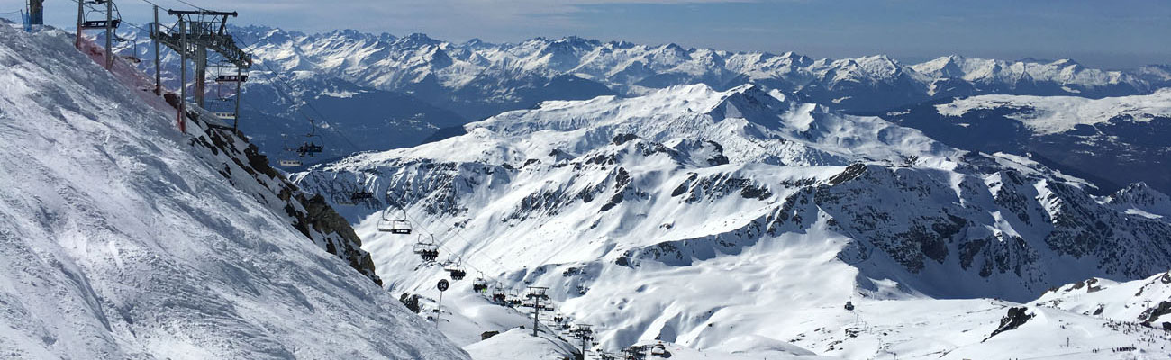 crowded, with so many big lodging properties, so expect lift queues and be wary that popular trails can be loaded with skiers. What Paradiski doesn’t deliver in ski village sophistication, it makes up for in adventuresome skiing, and tons of groomed pistes for intermediate skiers, fun parks for kids, and off-piste undulating big mountain terrain, some of the terrain looks almost lunar with sink holes and swirling bowls, still in sight of the lifts. Be aware at all times of the changing terrain, and consider hiring a ski guide. The ski lifts launch in every direction, often intersecting at a peak after crossing over another six or eight passenger chair.
