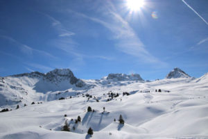 some crazy off-piste terrain, glacier skiing and beautiful view of nearby Courchevel. La Plagne is however not so charming chalet. Much of the mountain architecture is 1960’s – unattractive big buildings. But you came to ski – there’s tons of skiing – 425 kilomteres of trails. la Belle Plagne – the highest mountain village at 2050 meters is the prettiest as well, with big chalet style apartments and a few casual après ski bars, stores and restaurants in the village center. Kids can go sledding or the family can snowmobile after the ski lifts close from this central location.