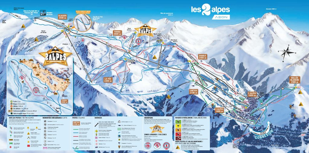 Fun fact, Les 2 Alpes is part of AEON ski company which also owns and operates Alpe d’Huez and La Grave, both within 45 minutes.