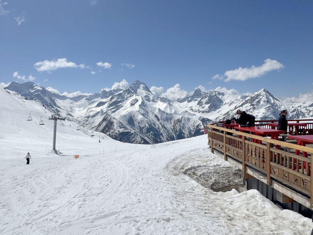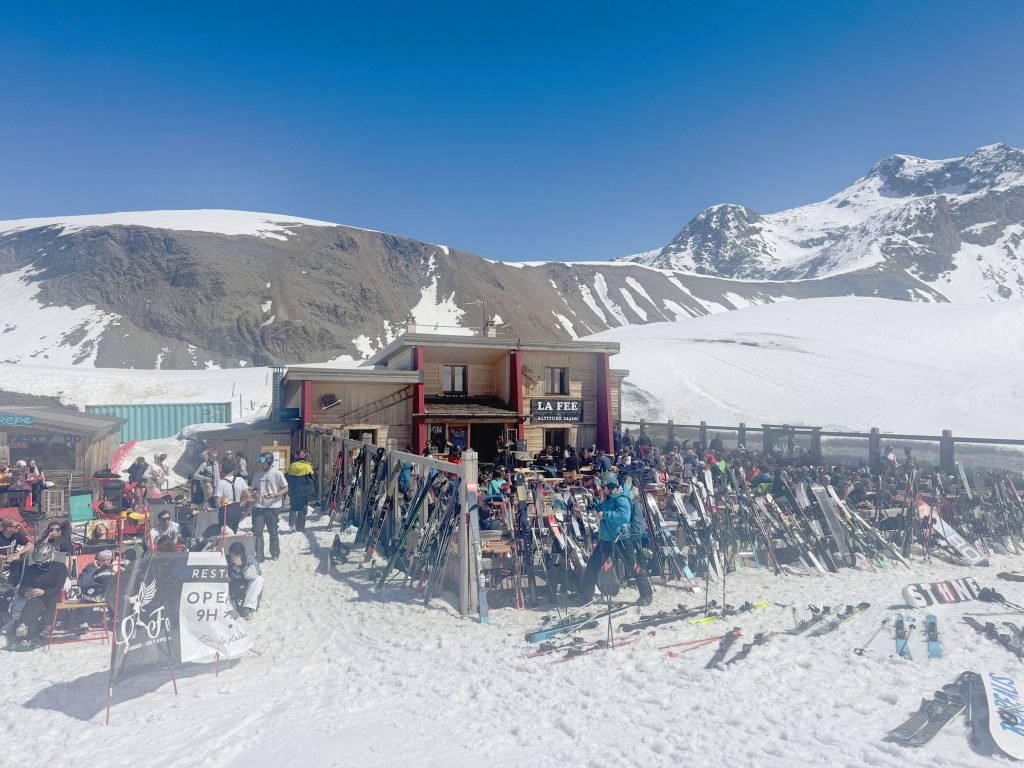 Don’t miss Fee and Pierre Grosse, another wonderful section of 2 Alpes ski resort with more great long trails, and more natural terrain for freeride skiing. At the base of the Fee lift, you’ll find a fun, more casual chalet, Le Fee restaurant and sun terrace restaurant with excellent service and good food! Le Fee also has a self-service creperie and bar with lounge chairs.