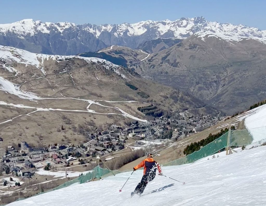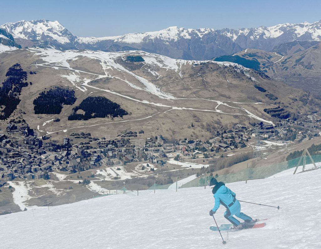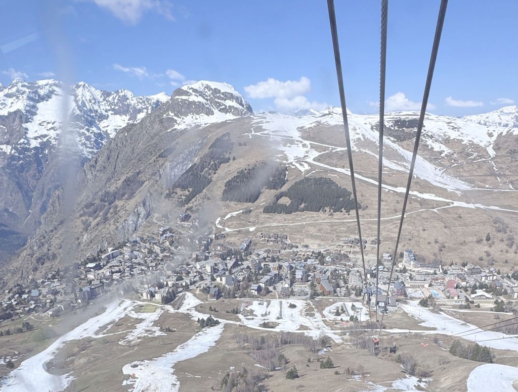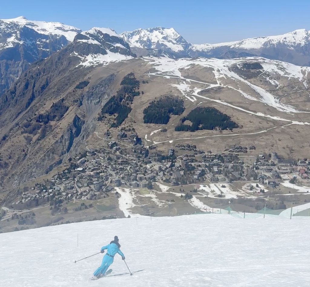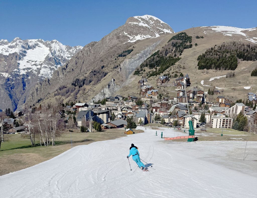 From 2 Alpes upper mountain back down to the village are really long runs, as much as 6,400-vertical feet, as you ski through various conditions from high alpine cold snow on the glacial plateau all the way to spring-like conditions near the base of 1600 meters at Mont de Lans village.