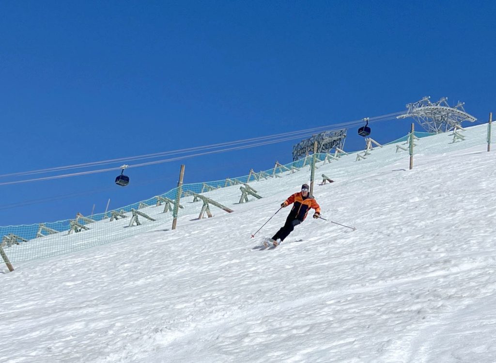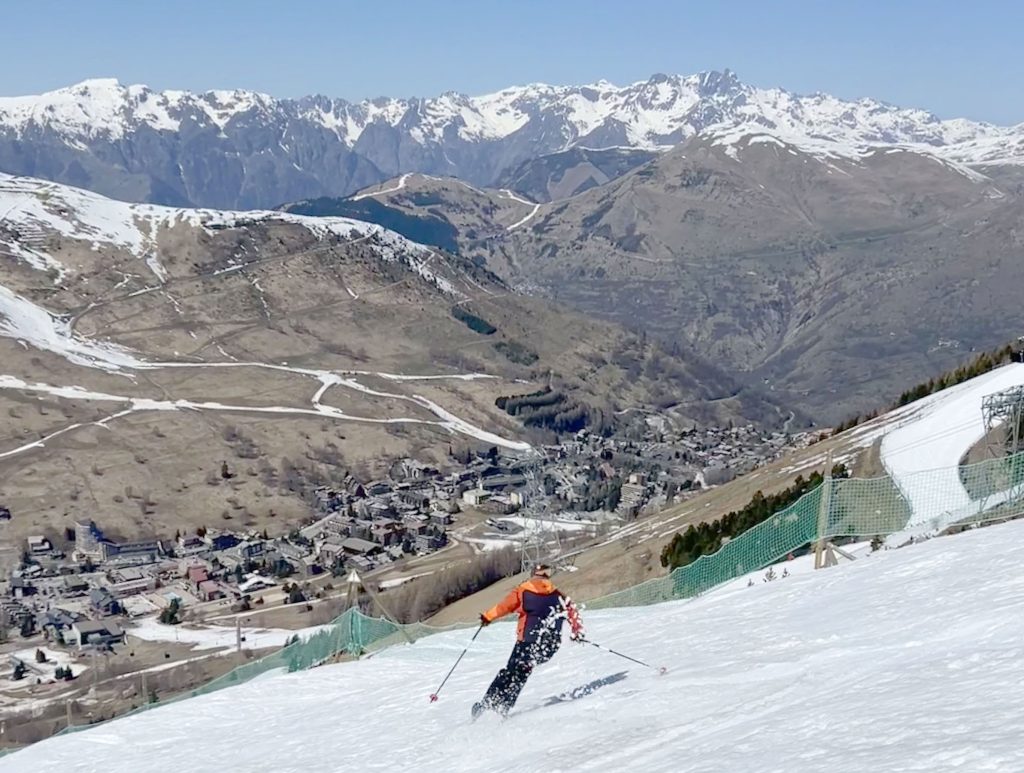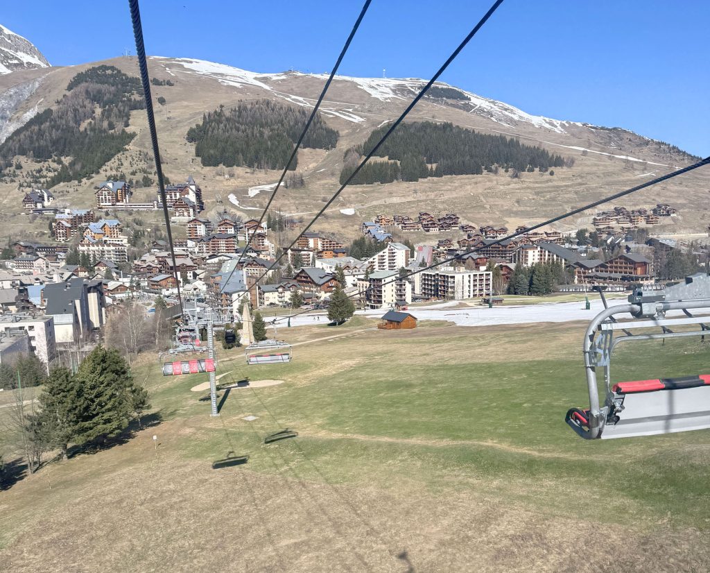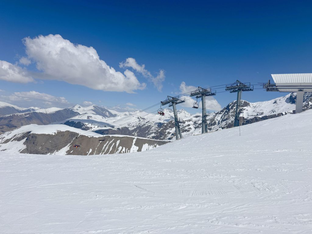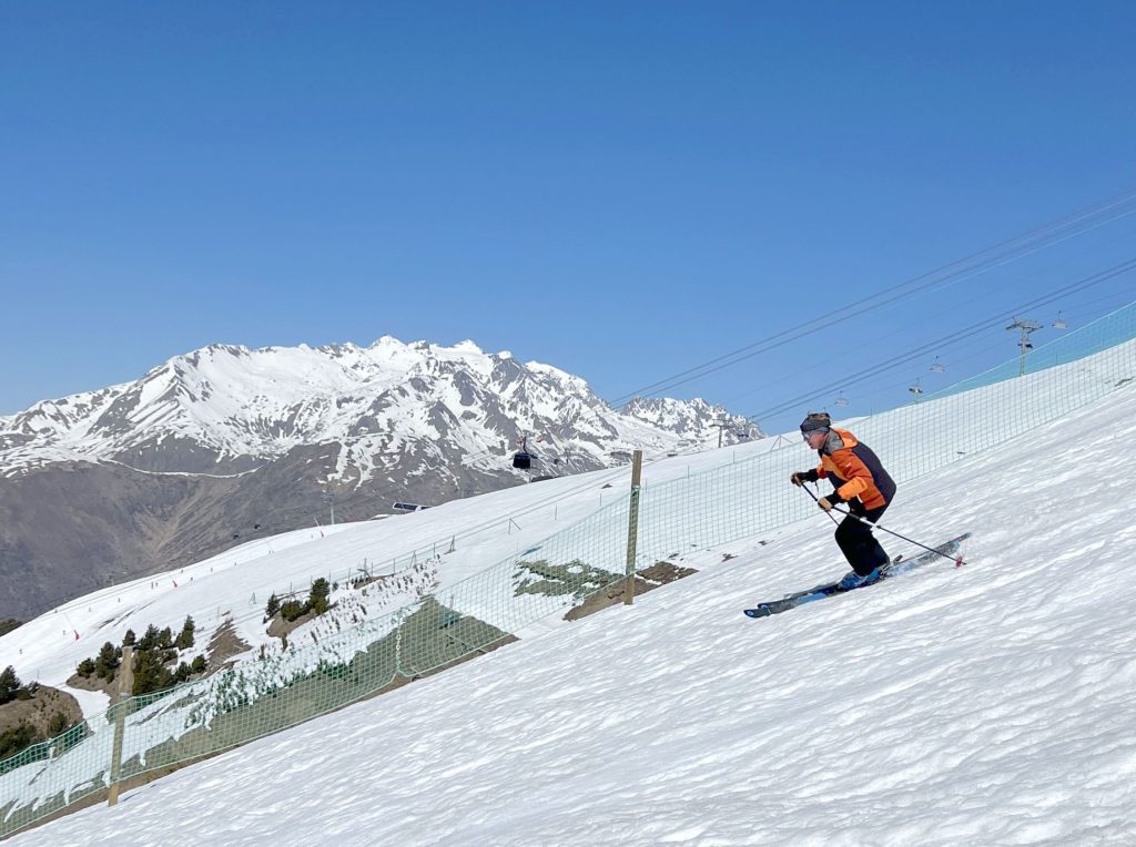 From 2 Alpes upper mountain back down to the village are really long runs, as much as 6,400-vertical feet, as you ski through various conditions from high alpine cold snow on the glacial plateau all the way to spring-like conditions near the base of 1600 meters at Mont de Lans village.