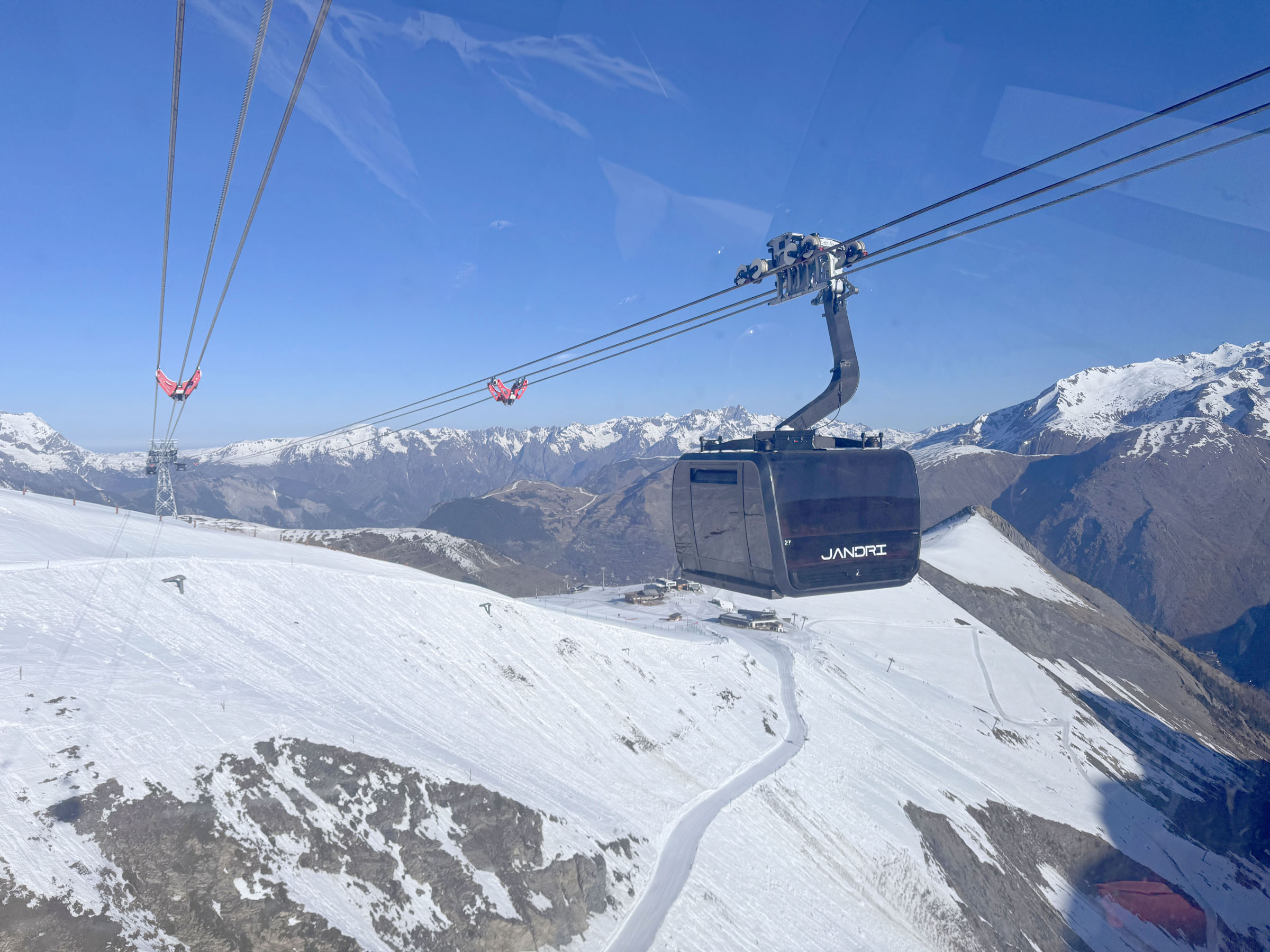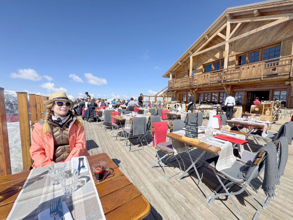 We stayed at the lovely traditional Hôtel Côte Brune right at the base of the slopes, a short ski or walk to the Jandri gondola, with great proximity to town. In fact, the hotel has its own umbrella bar that rocks from 4 to 7, we could enjoy the DJ music and apres ski vibe from our balcony.