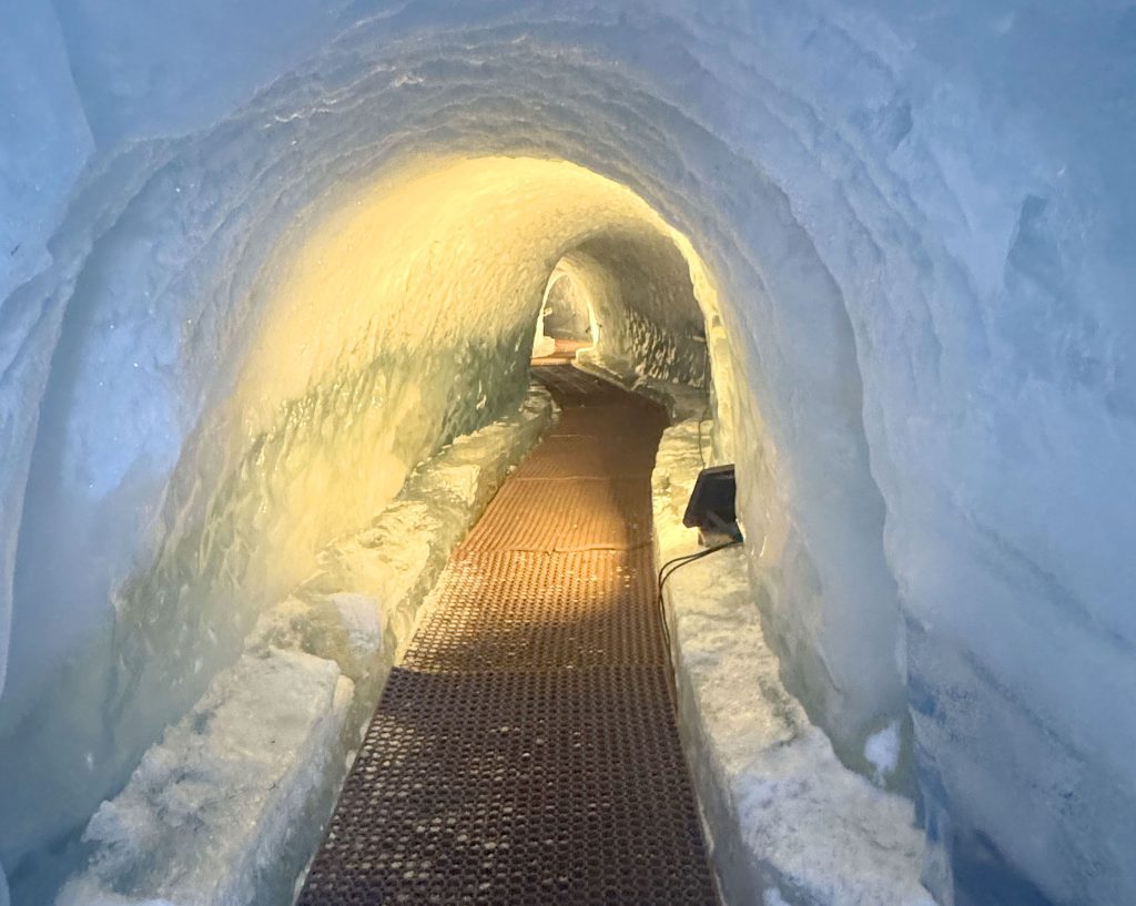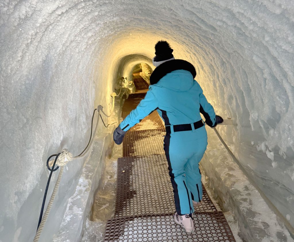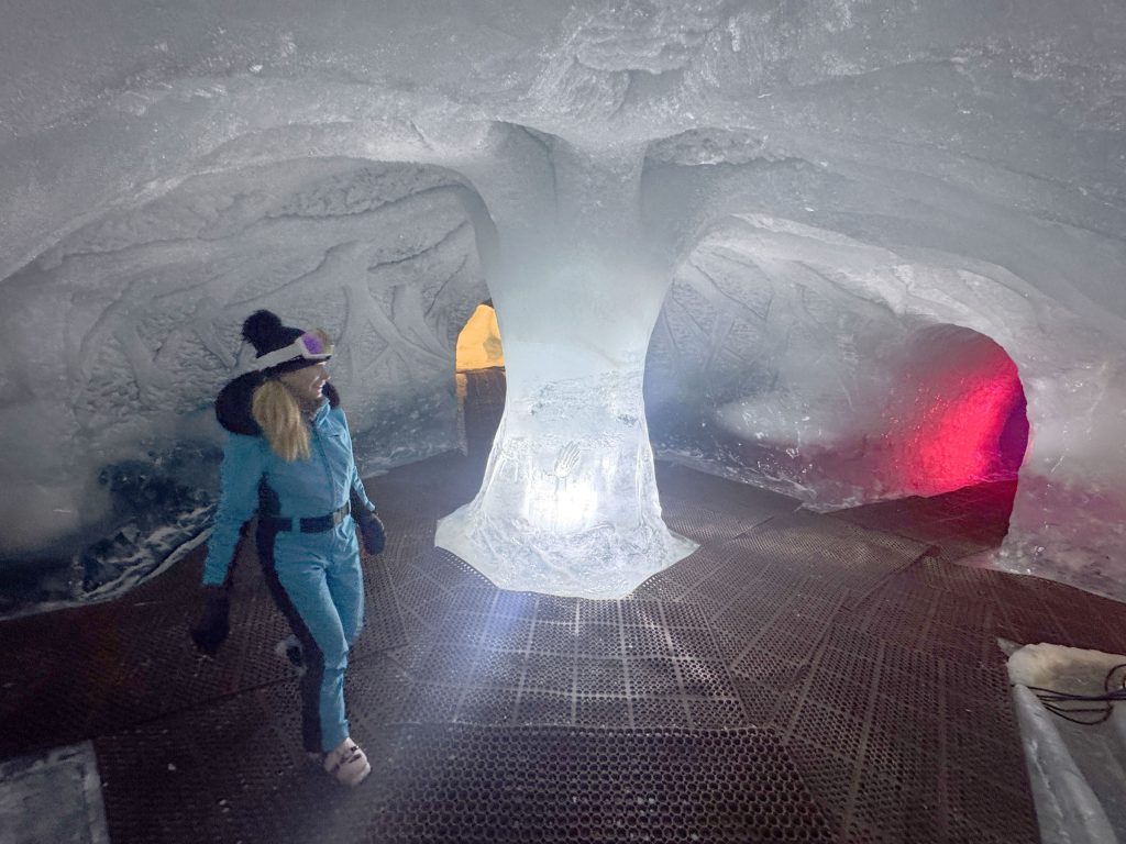 2 Alpes glacier skiing at the summit is surprisingly mellow, in fact it’s rather flat, but you must go up to see the amazing view of the surrounding Alps, especially the Meije peak that resembles a Matterhorn across the valley in France’s Ecrin National Park. You also have a fantastic view of Les Sybelles ski resort nearby too. Take a few scenic summit T-Bar laps, or ride up the Funicular, and visit the Grotte de Glacier ($7 Euro) to enter an amazing glacial cave with beautiful ice carvings illuminated inside.