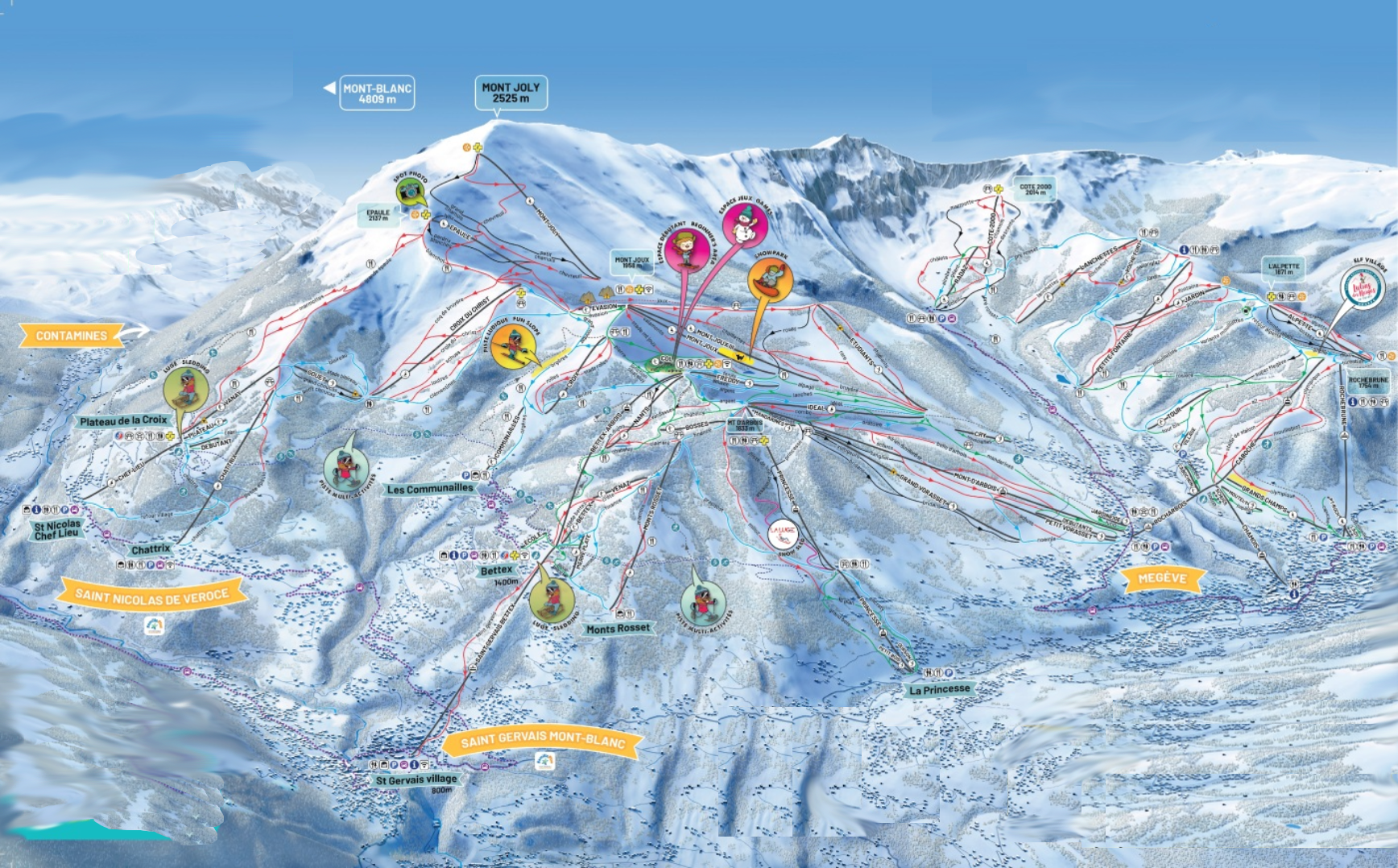 Mountains: Mont d´Arbois, Rochebrune, Cote 2000, Mont Joly and Mont Joie.