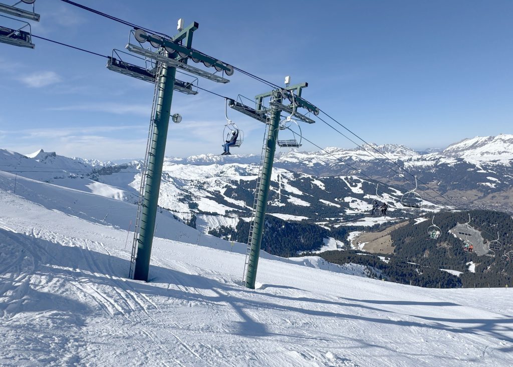 Mont Joly is the highest and most challenging skiing at 2525-meters. Here you will find the most difficult trail, the black diamond “Grand Chamois” or a narrow red trail that swerves down the mountainside. Megeve offers some newer modern lifts but many of Megeve’s lifts are dated, with pomas, and older chairs due for an upgrade. Surprising, given how fancy the clientele is at Megeve, and pricey the lodging, that ski lifts aren’t more sophisticated. Lift plans are in the works and some new lift lines have been cut but some of these lifts have been pending for years.