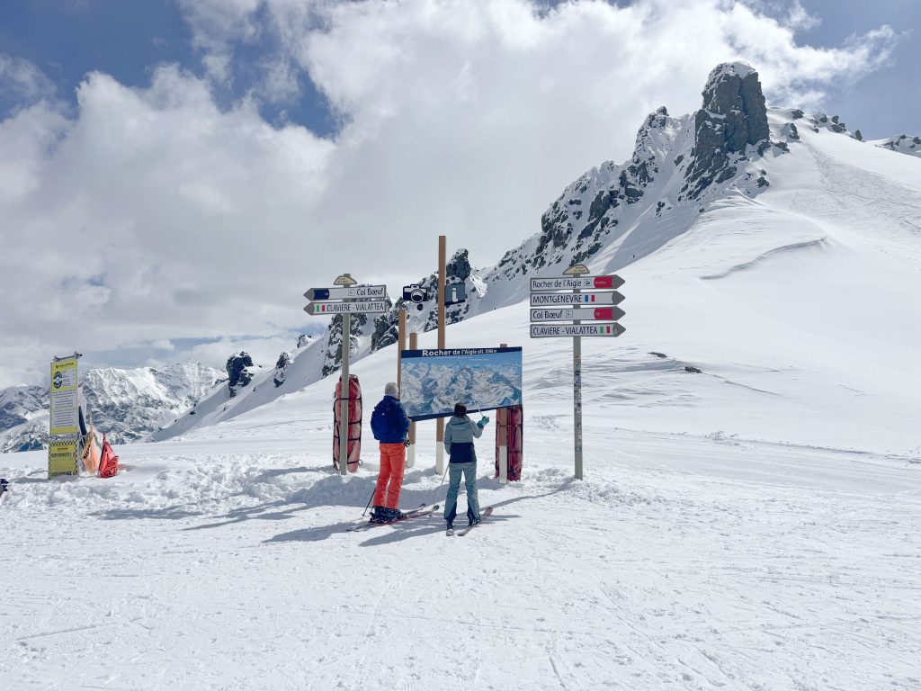 Montgenevre is part of Vialattea – translated in English to The Milky Way. Across the valley, from Claviere, is this massive ski resort, which includes Cesana – Sansicario and Sestriere. We’d hope to be able to ski all this via interconnected lifts, however the Claviere to Cesano lift connection was closed during our late March visit, lack of snow or lack of effort, the transfer lift was “kaput” – which meant a 30-minute drive down and up valley from Claviere to Sestriere. The Milky Way region’s lifts and trails seem to be extremely overstated, lifts have been removed, or are not operating regularly, some trails are not maintained, however Vialattea still boasts 400-km of skiing.