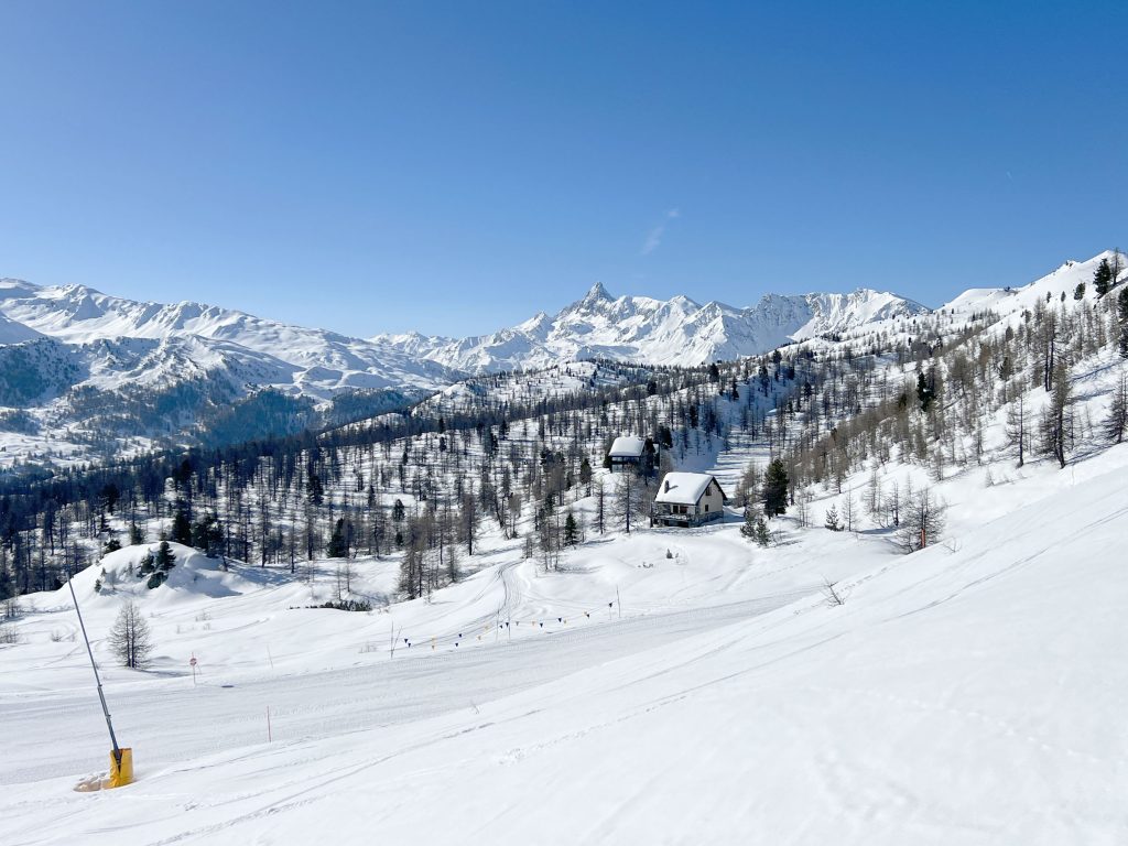 Montgenevre skiing was the highlight of our ski visit to Vialattea. This beautiful region of the Cote D’Azur Alps is super historic too, an important ancient trade route, with remains of old stone military forts and medieval chapels scattered about the mountains.