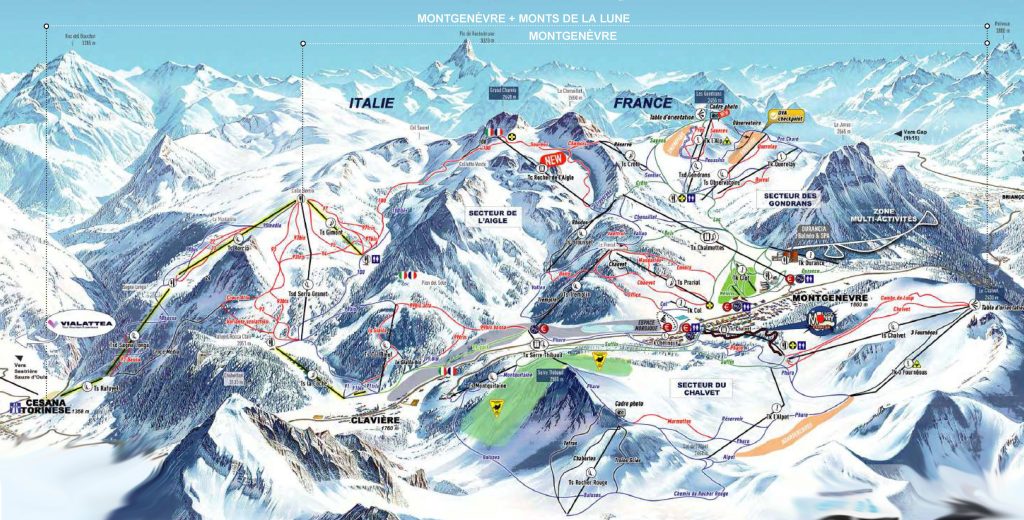 Montgenevre France Ski Area is a very large ski area on both sides of the village of Montgenevre. It includes most of the lifts in Claviere Italy. But if you want to ski ALL of the Claviere lifts you must purchase the Monts De La Lune Ski Pass. And if you want to ski the entire Milky Way (Vialattea) Ski Region including all of Claviere’s lifts and 4 other Italian ski areas you must purchase the Vialattea Ski Pass.