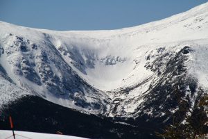 Every spring, 500-4,000 skiers and snowboarders a day will flock to Tuckerman Ravine, a spectacular glacial bowl on the eastern face of Mt. Washington, for arguably the steepest backcountry terrain in the country. Tuckerman Ravine typically receives up to 26 feet of snow (the record snow was 566”/47-feet in 1969). The more snow, the better the skiing, but skiers should be sure to aware of the avalanche risk by checking the snow stability (see the link below for reports).
