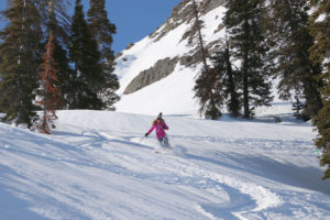 Alta is a skiers’ classic and one of the first resorts in the country in 1938. At the top of Little Cottonwood Canyon, Alta receives over 500 inches of snow annually. Spread out across two valleys, this skiers-only (no snowboarders allowed at Alta) mountain offers fabulous challenging terrain to go with its copious snowfall.