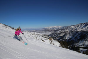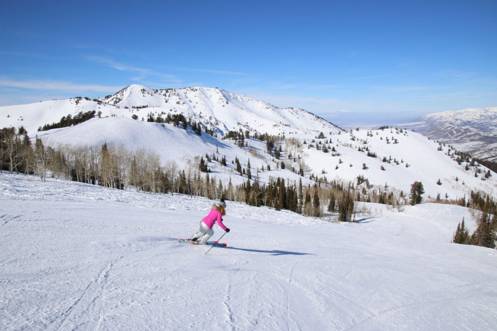 Powder Mountain 2,876-acres of lift-served terrain is served primarily by relaxed rides up incredibly scenic snow covered slopes. The pace is slower, the vibe is health, outdoorsy and friendly. Ski instructors offer all day kids camps. Dozens of groomed blue and black runs make up the central ski area, with lots of fresh powder opportunities just off the trails in the trees and side chutes, its a snowy playground. Cababe Canyon, Mary’s Bowl and Lefty’s are easily reached with an off-piste feel to some of the natural terrain.