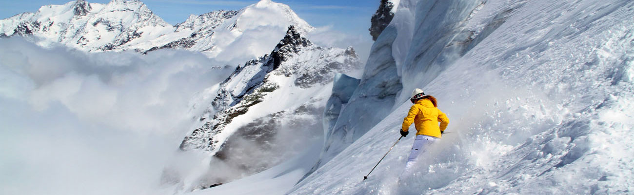 Skiing off the Summit of Saas Fee Switzerland into the Powder