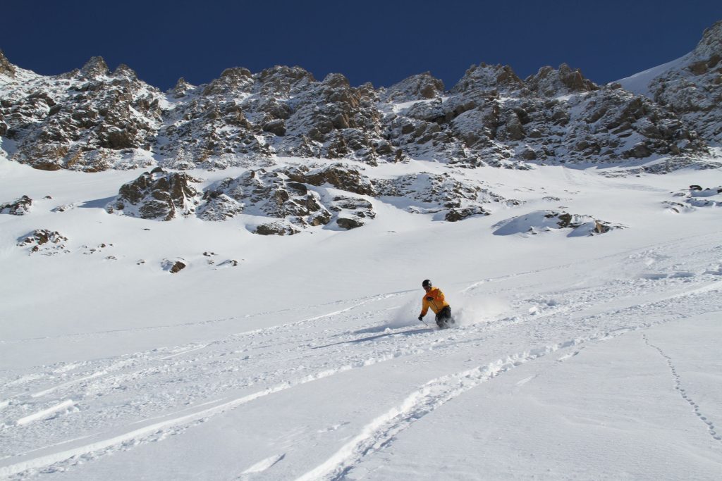 for any level skier, on a cloudy day its tricky since you are entirely above treeline. Below the gently pitched summit plateau, a quad chair serves one steeper prepared Red Run on the front side (and plenty of steep off-piste terrain which warrants a ski guide).