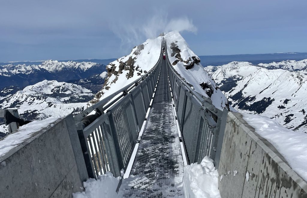 An amazing Alps experience is Glacier 3000’s Peak Walk – the highest suspension bridge in the world connecting two peaks. Climb the stairs and walk the bridge, included in your lift ticket, to see the wonder of engineering, and the wild drop below this wiggly cabled walkway.