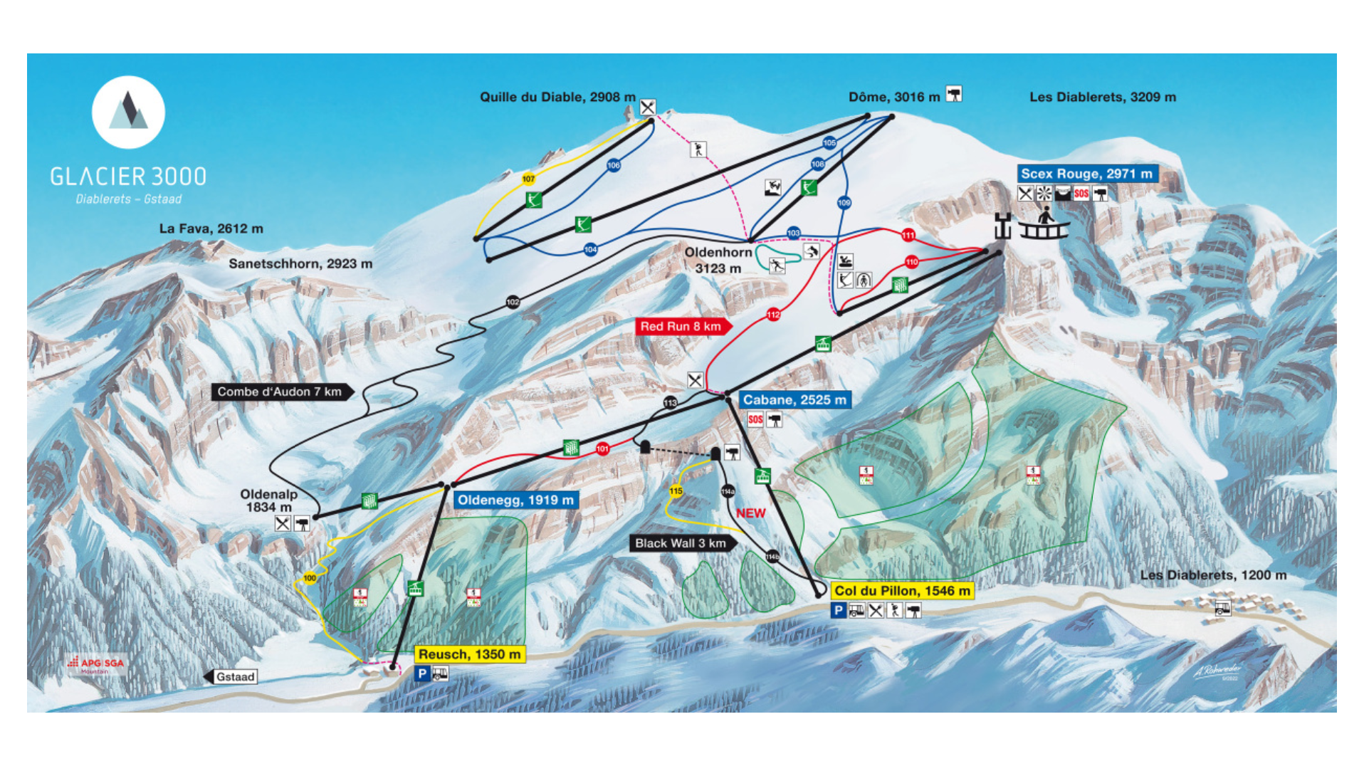 Glacier 3000 Ski Area Map – Click on Map to Enlarge and launch a new browser