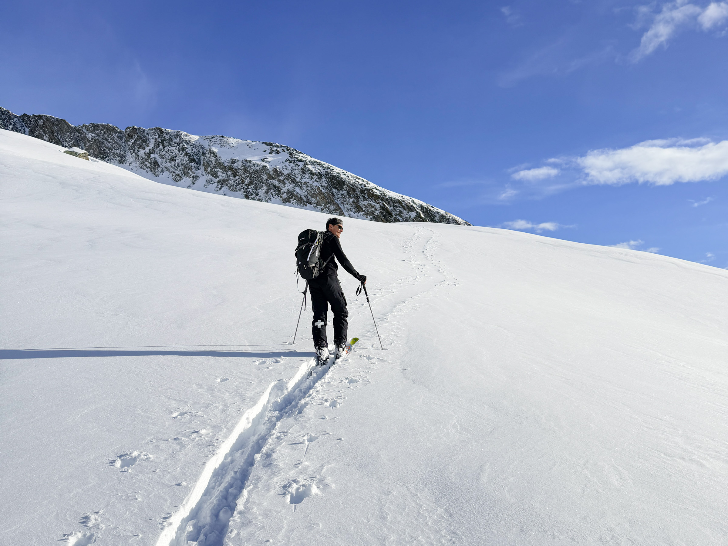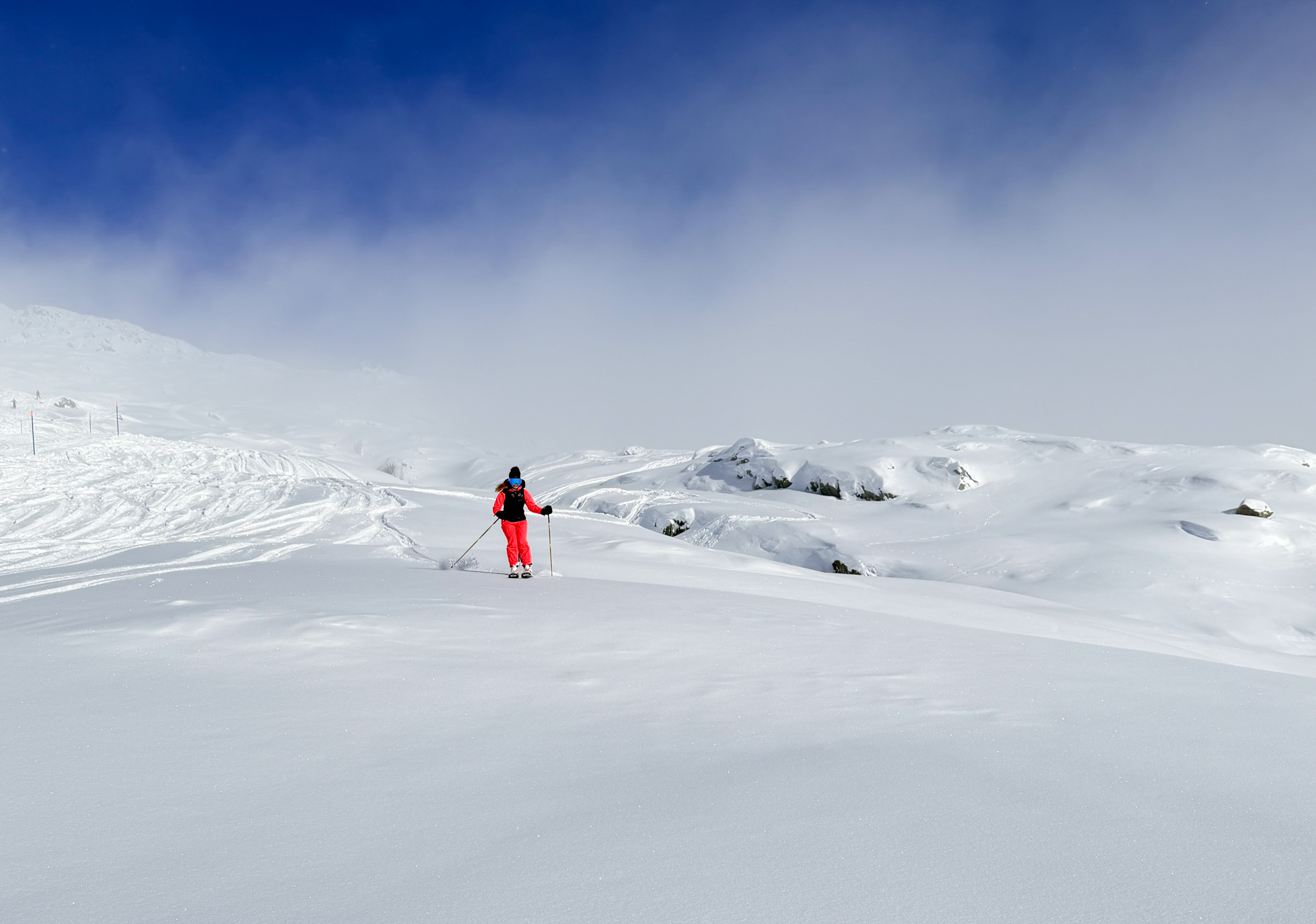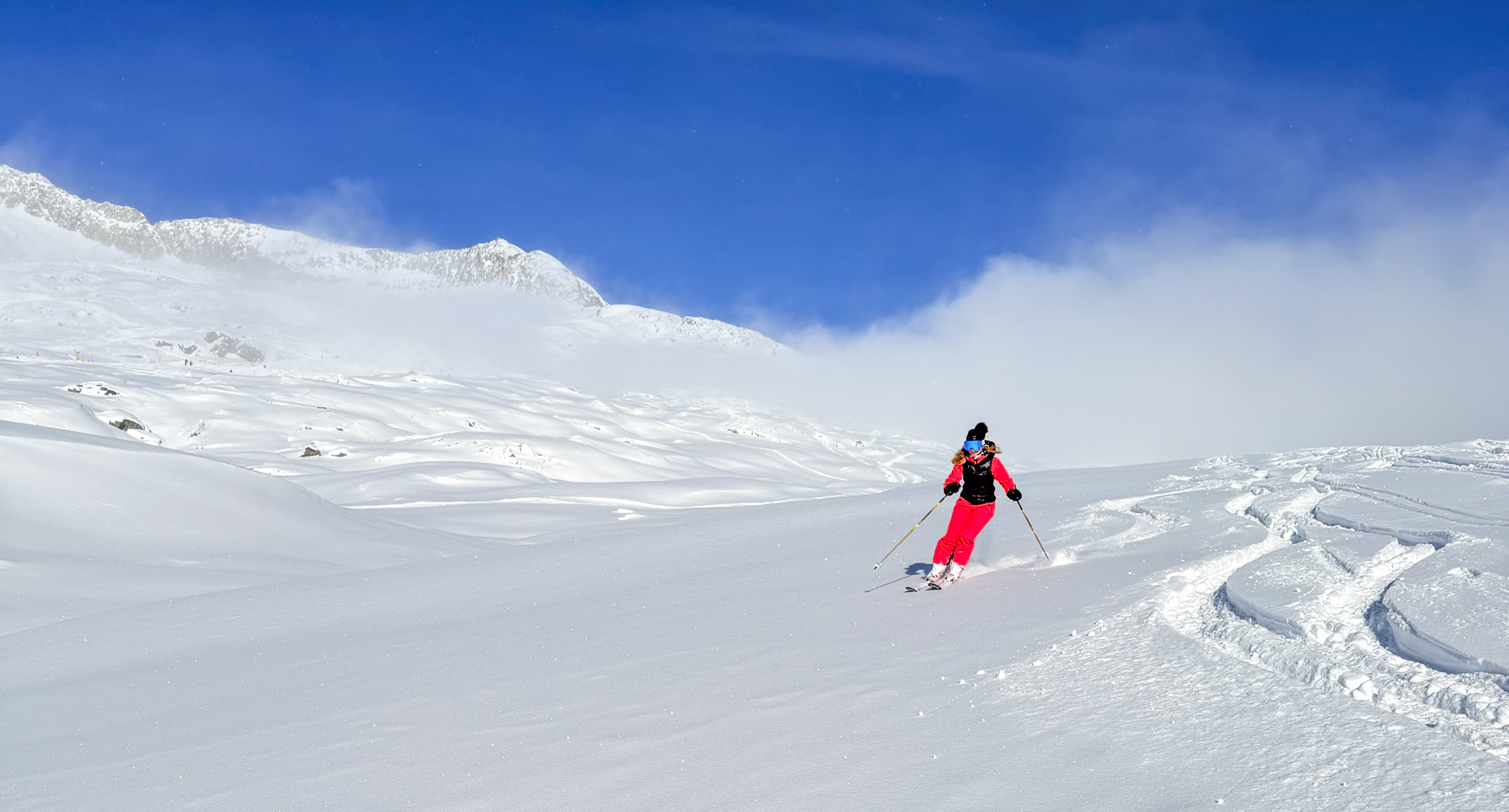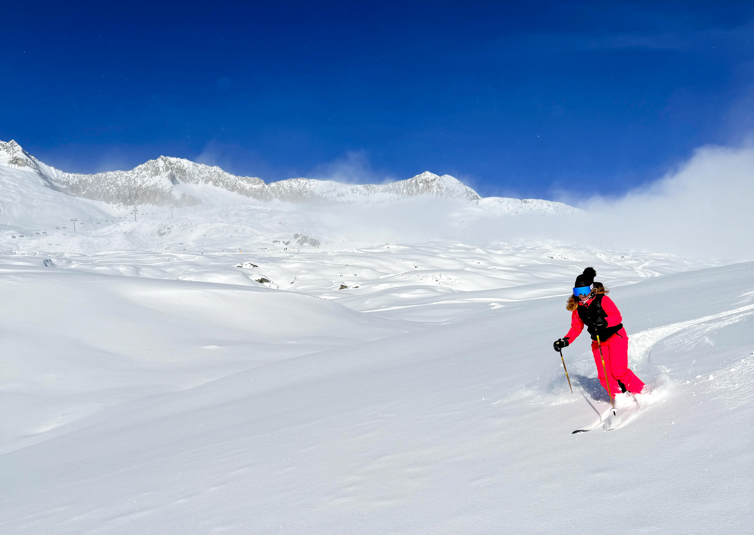 To ski off-piste at Belalp, it is best to hire a guide to explore beyond the prepared pistes here. From atop Hohstock, experts can ski through a tunnel to a black diamond ski route called “Tunnel Westseite” and Rote Blatte, a vast snow bowl – but there’s avi risk, rocks and crevasses you can’t see. The upper mountain T-Bars to this summit section were not open during our mid-January visit, not enough snow. We had an amazing guided ski day, we skinned up 30-minutes to the right of Hohstock, and skied a beautiful valley, all the way down to Hotel Belalp – where we had a magnificent lunch with panoramic views including great vistas of Aletsch Glacier – Europe’s largest glacier.
