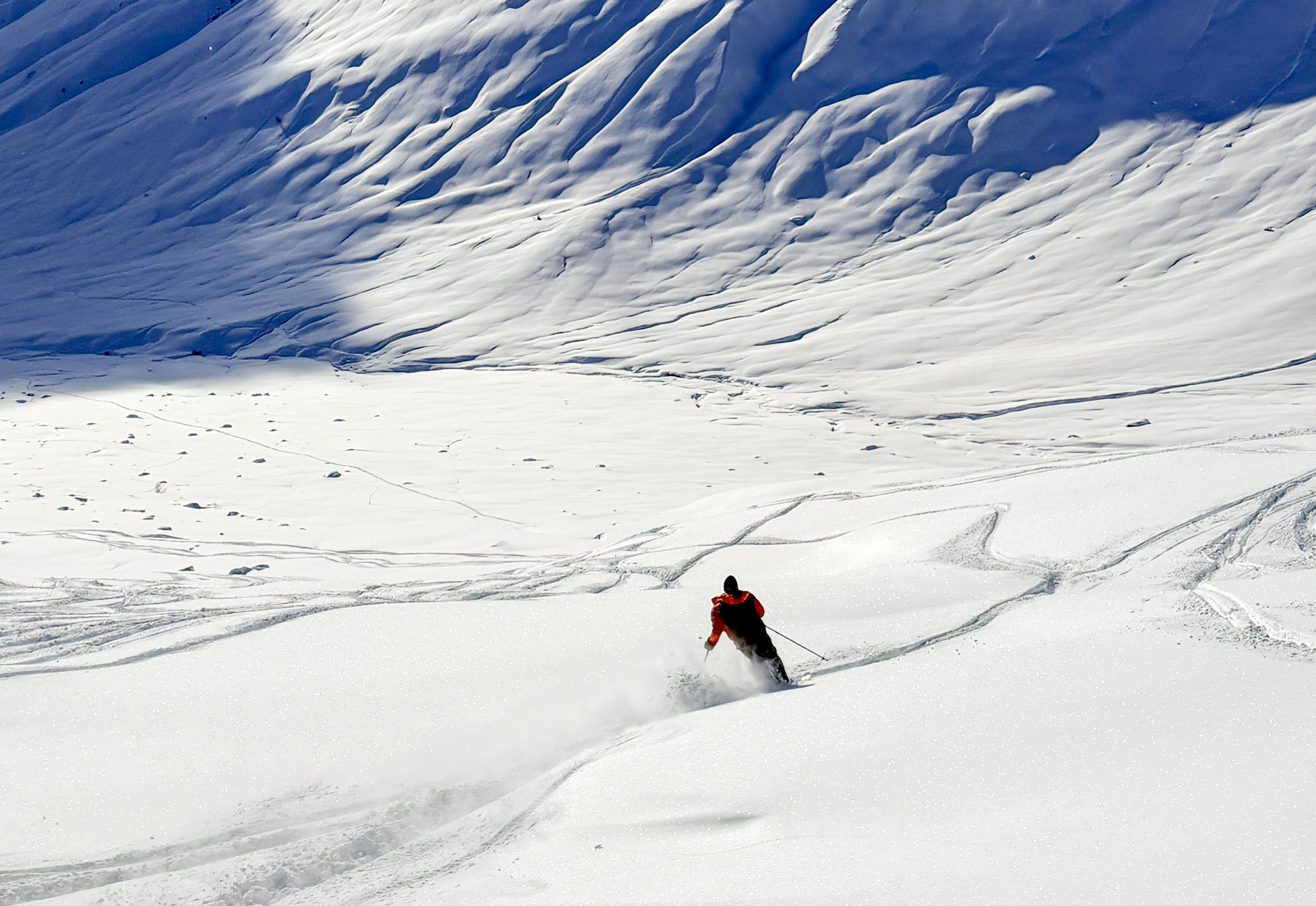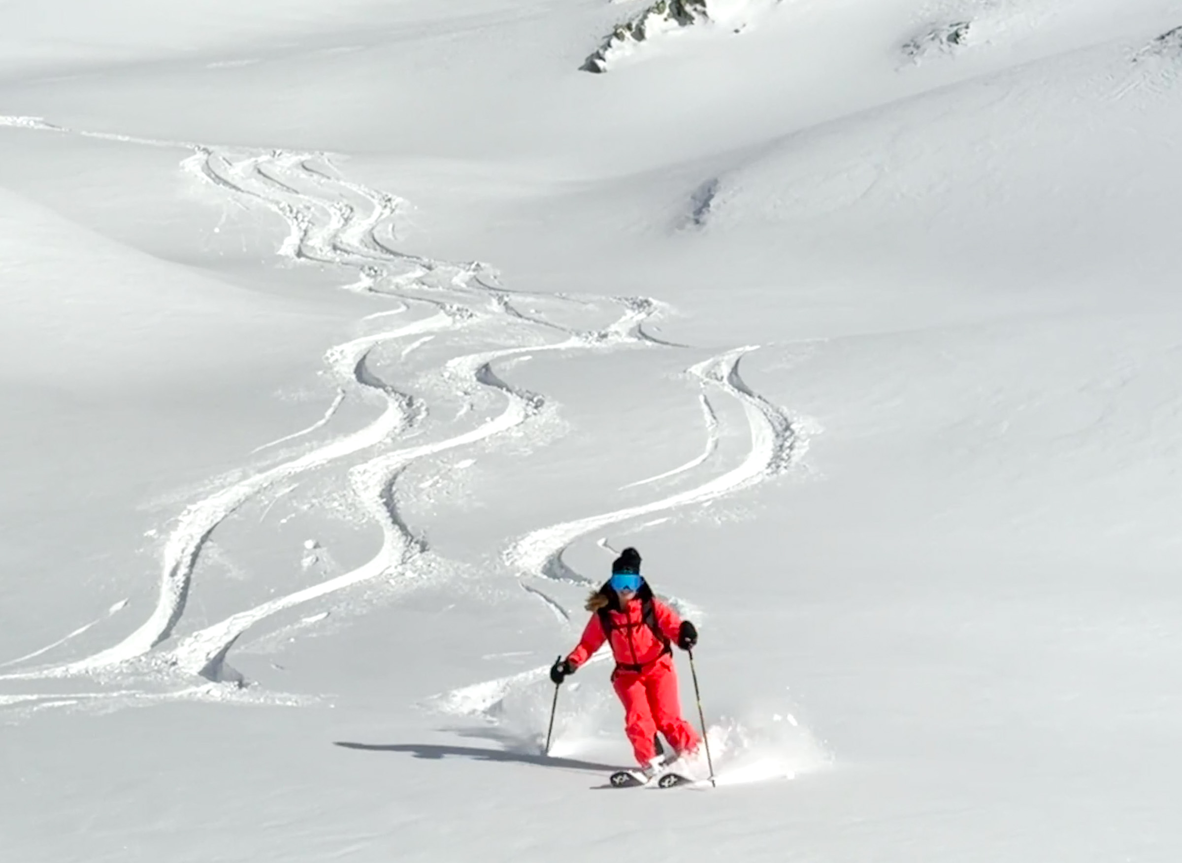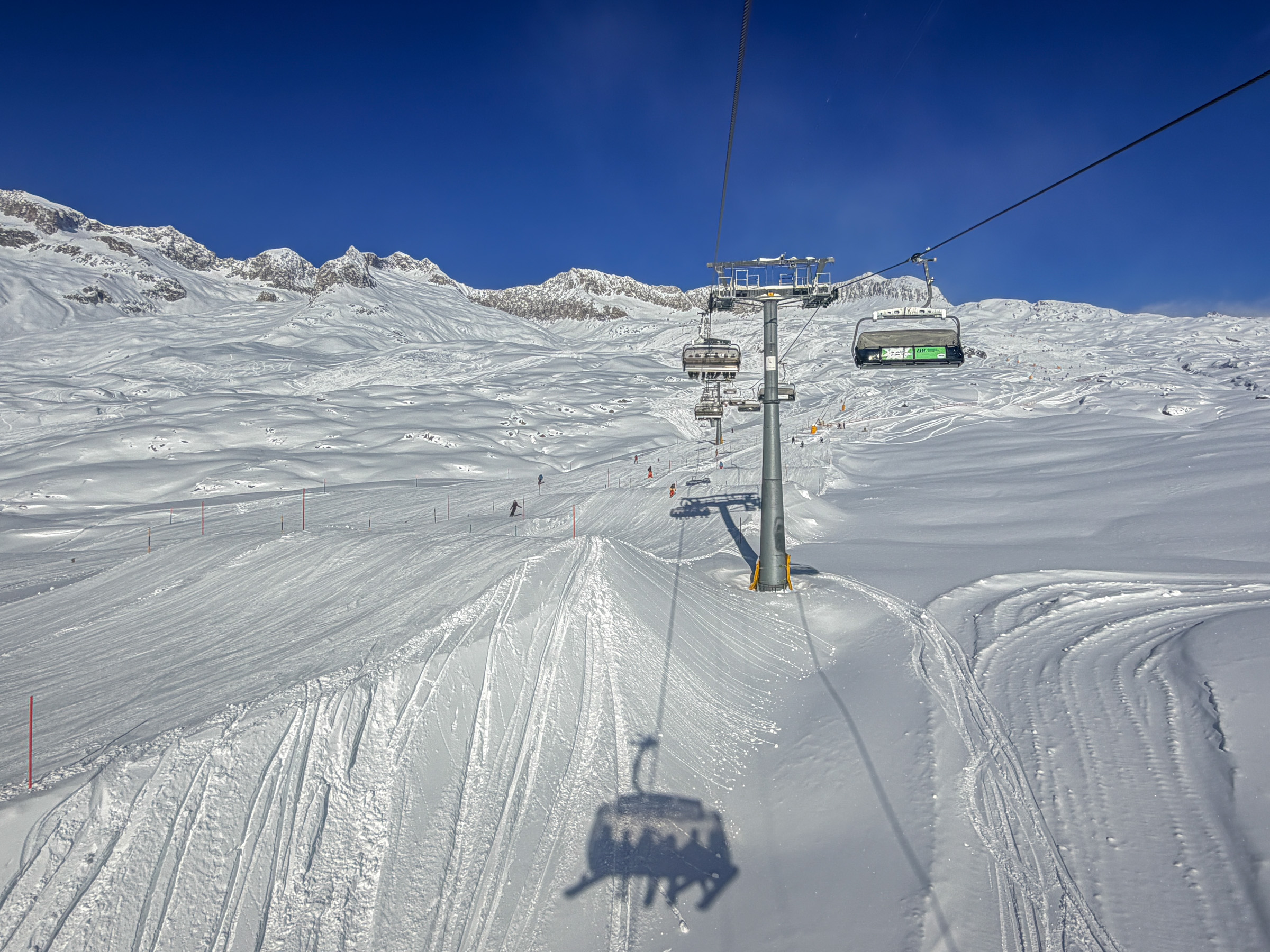 An Aerial Tramway and a Gondola access the Blatten/Belalp Ski area from the base village. Belalp sits at 2094-meters, it takes 2 chairlifts and a T-Bar to reach the Hohstock summit (3118-meters) 10, 230′. Most of Belalp’s upper mountain skiing is from the Sparrhorn bubble-covered six-pack lift, which accesses a few great trails, mostly low angle – and a huge playground of freeride terrain. My favorite prepared piste is Aletsch, #10 – its a ten and named for the famous local Aletsch glacier (smaller every year but still the largest in the Alps), this trail is scenic and feels so far from the rest of the resort.