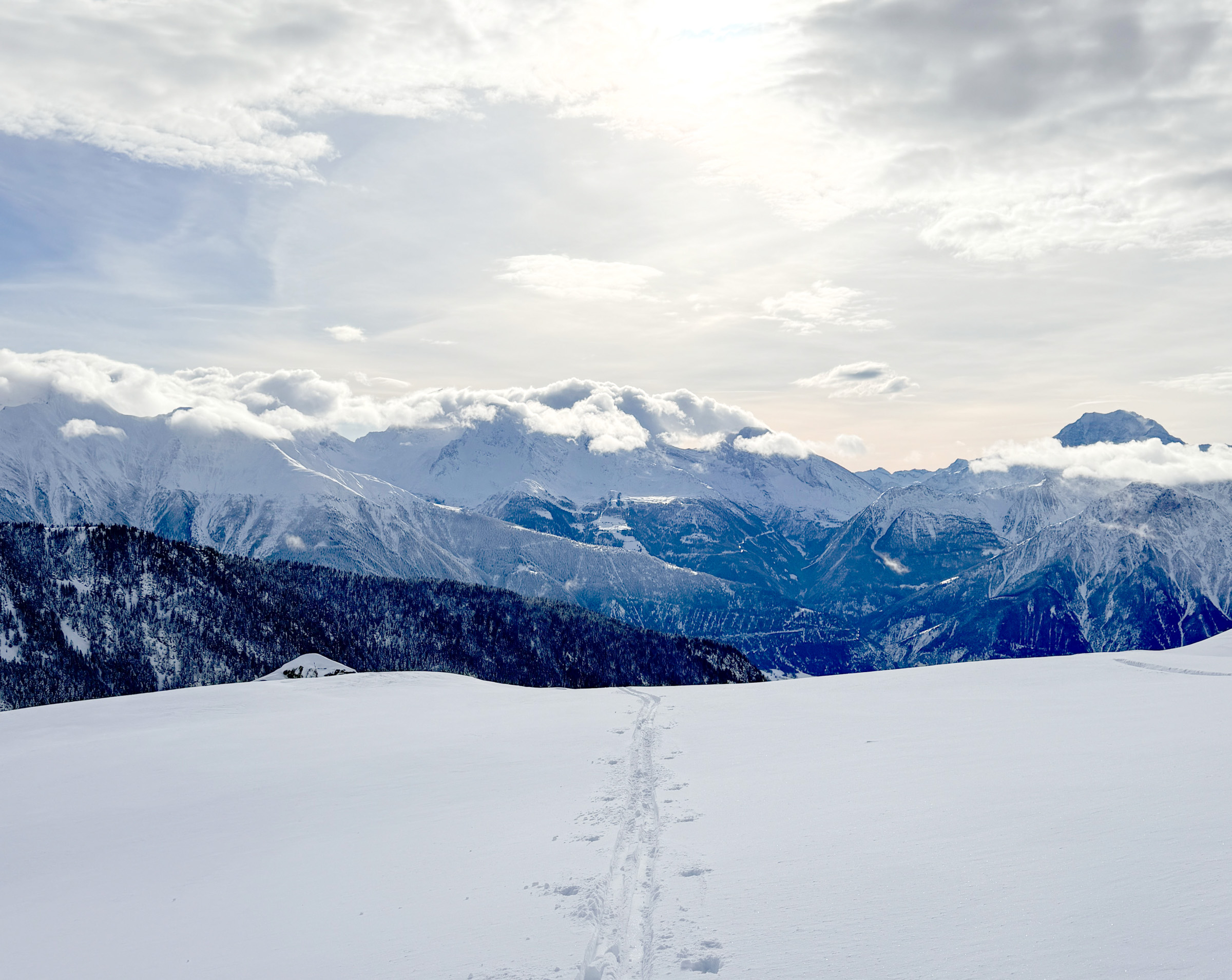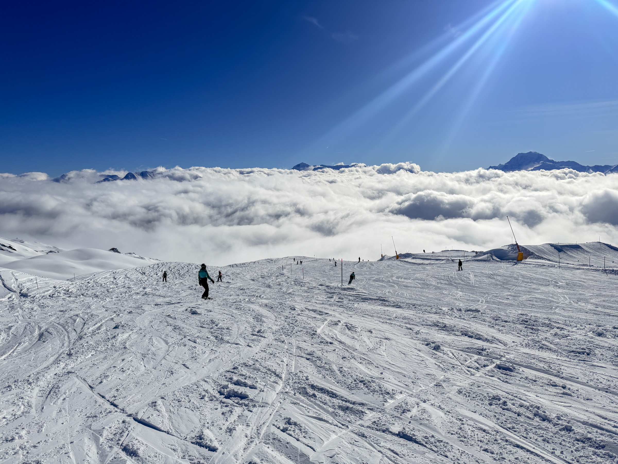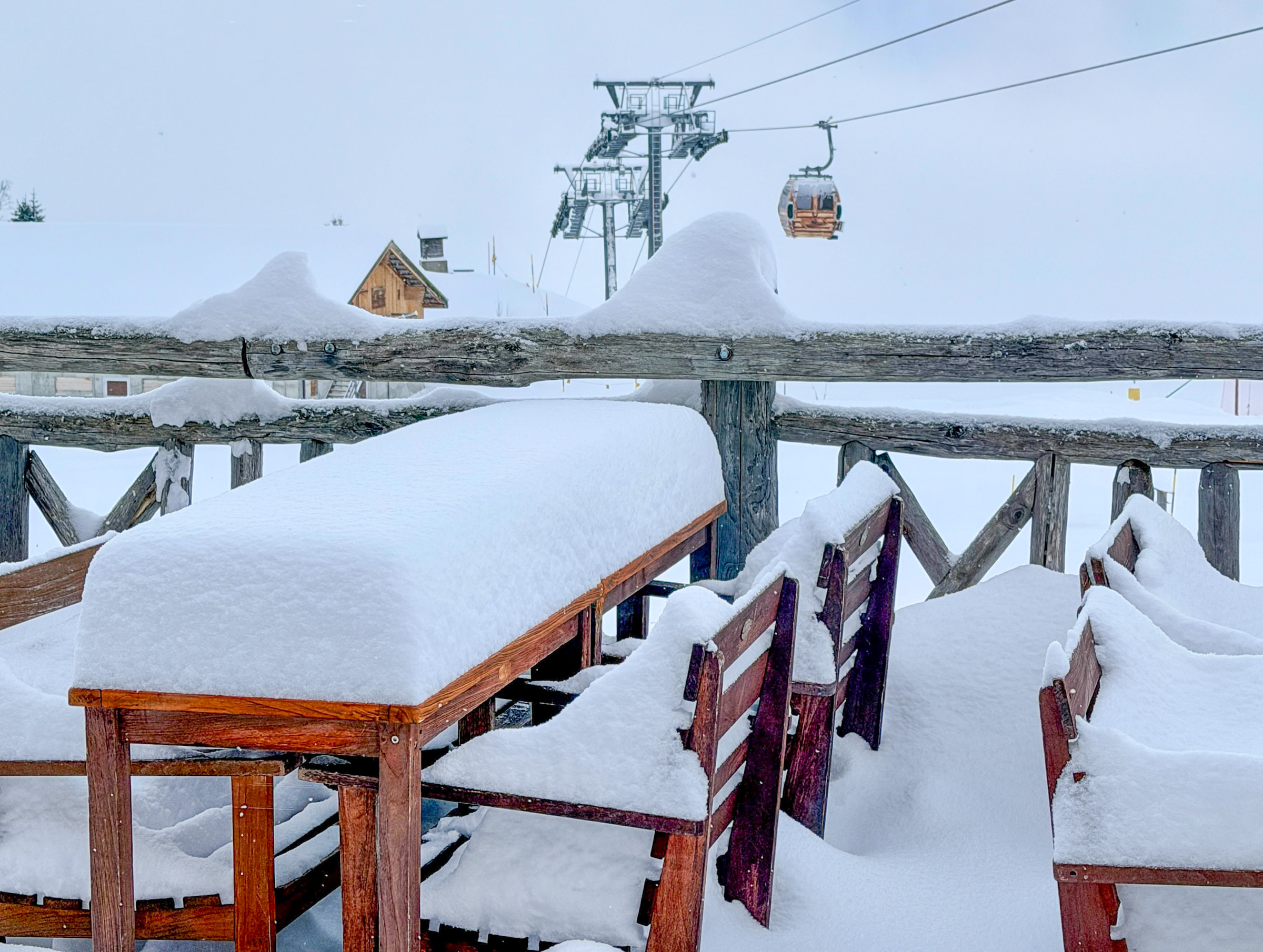 Chiematte at 2000-meters, atop the gondola from the base, feels like a mid-mountain resort village, though humble and car-free, its really quite magical. Here you find ski school, and a few ski in ski out hotels and restaurants, and many chalets for rent.