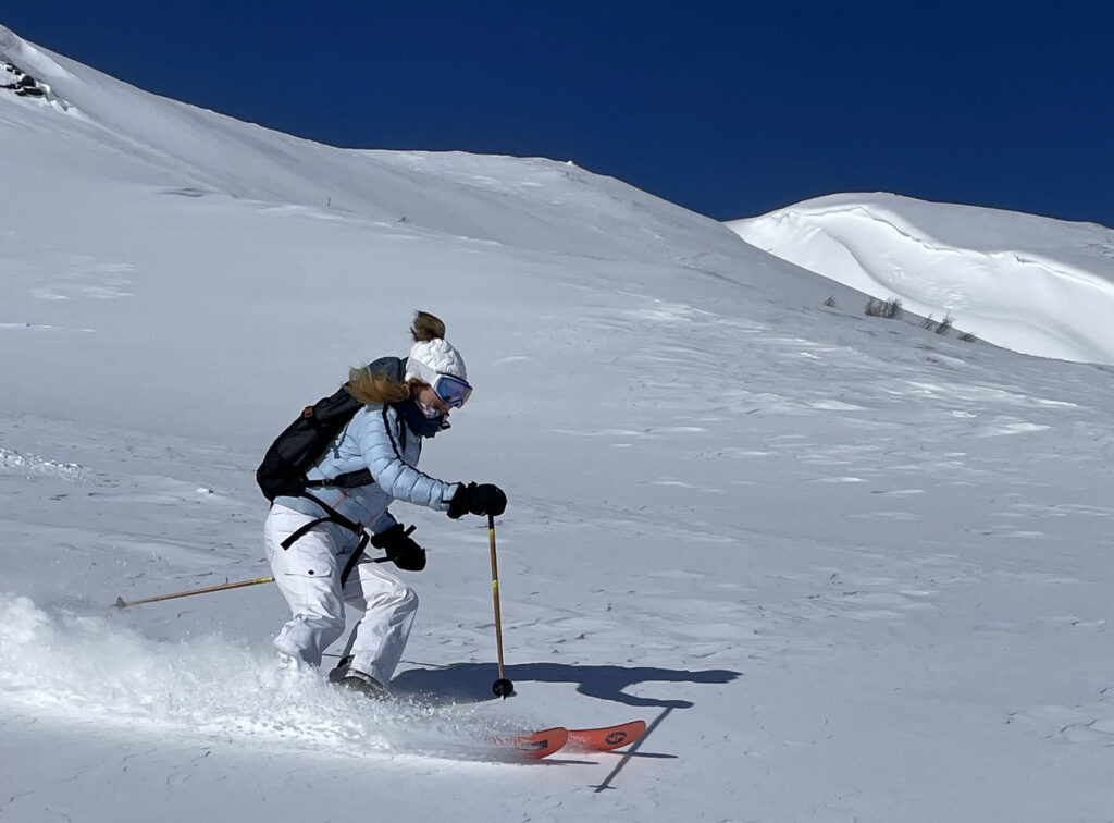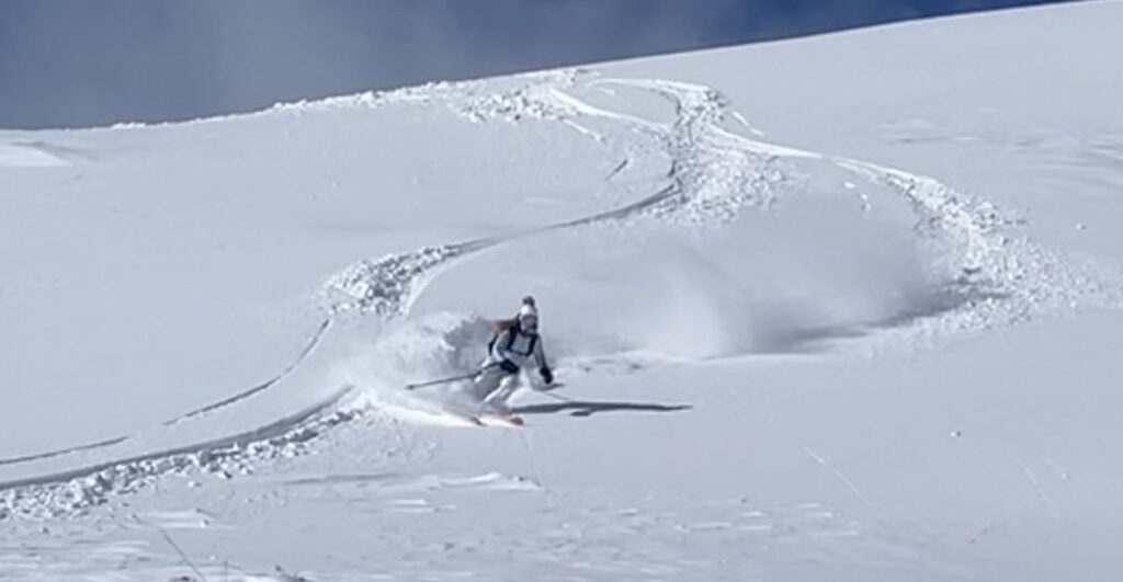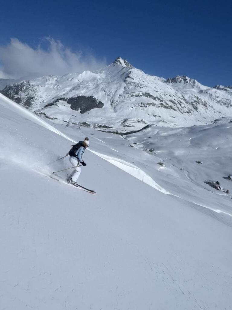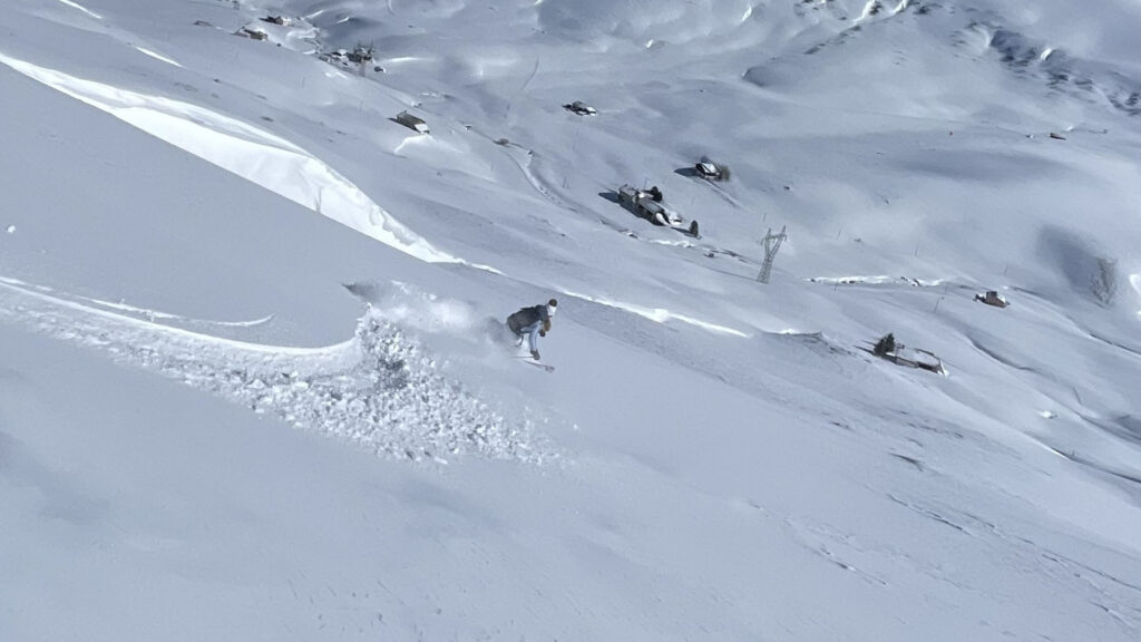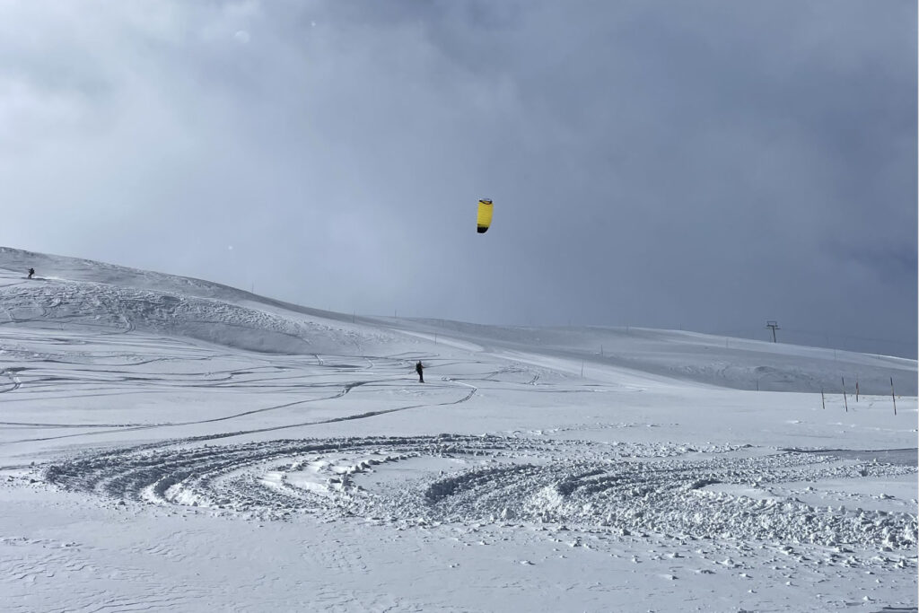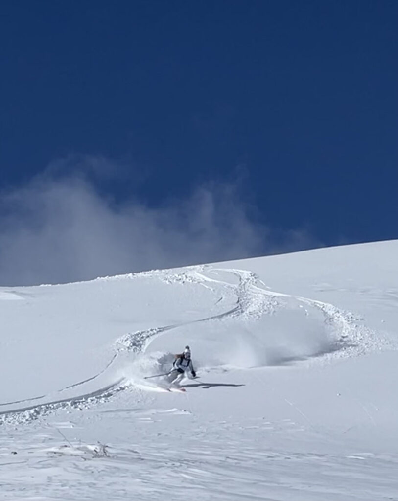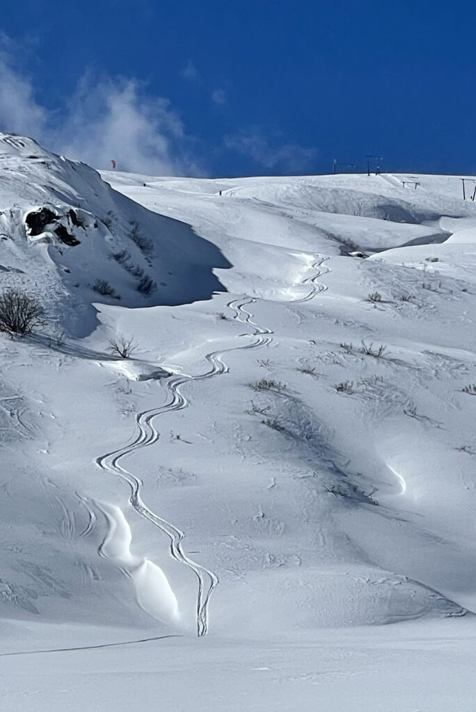 Kite skiers were our only competition for first tracks as they also love Bivio’s wide open bowls. With a bit of wind, they glide and fly across snowy rolling peaks – quite a sight to see with their colorful kites and acrobatics.