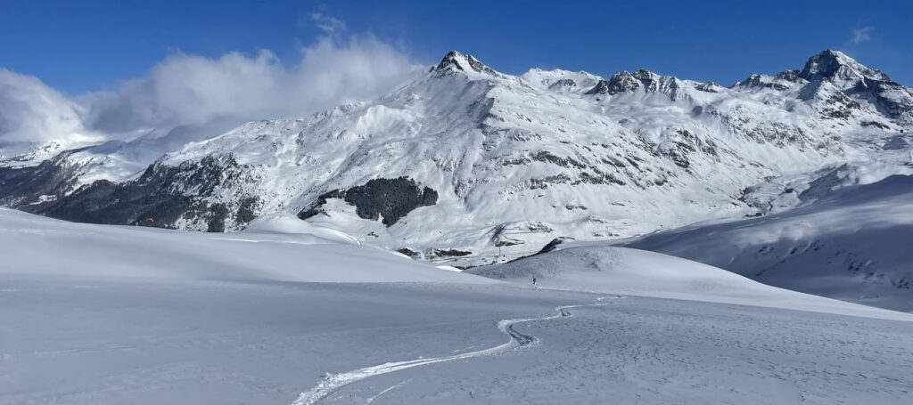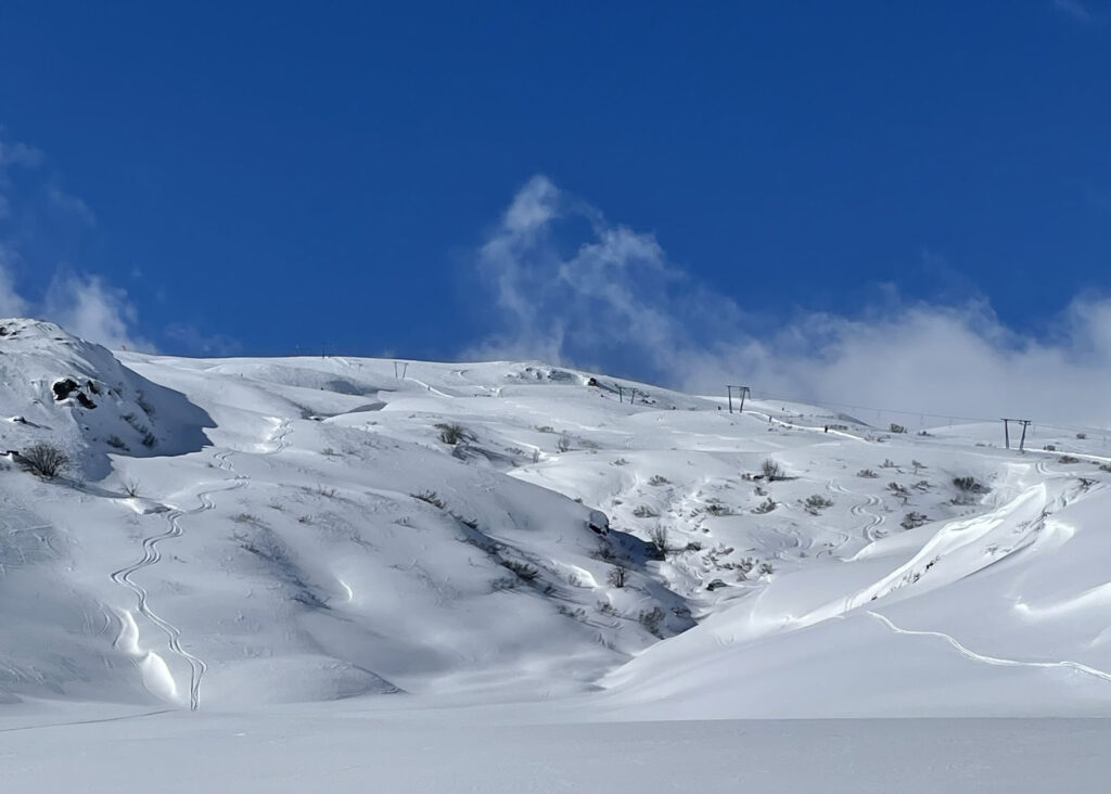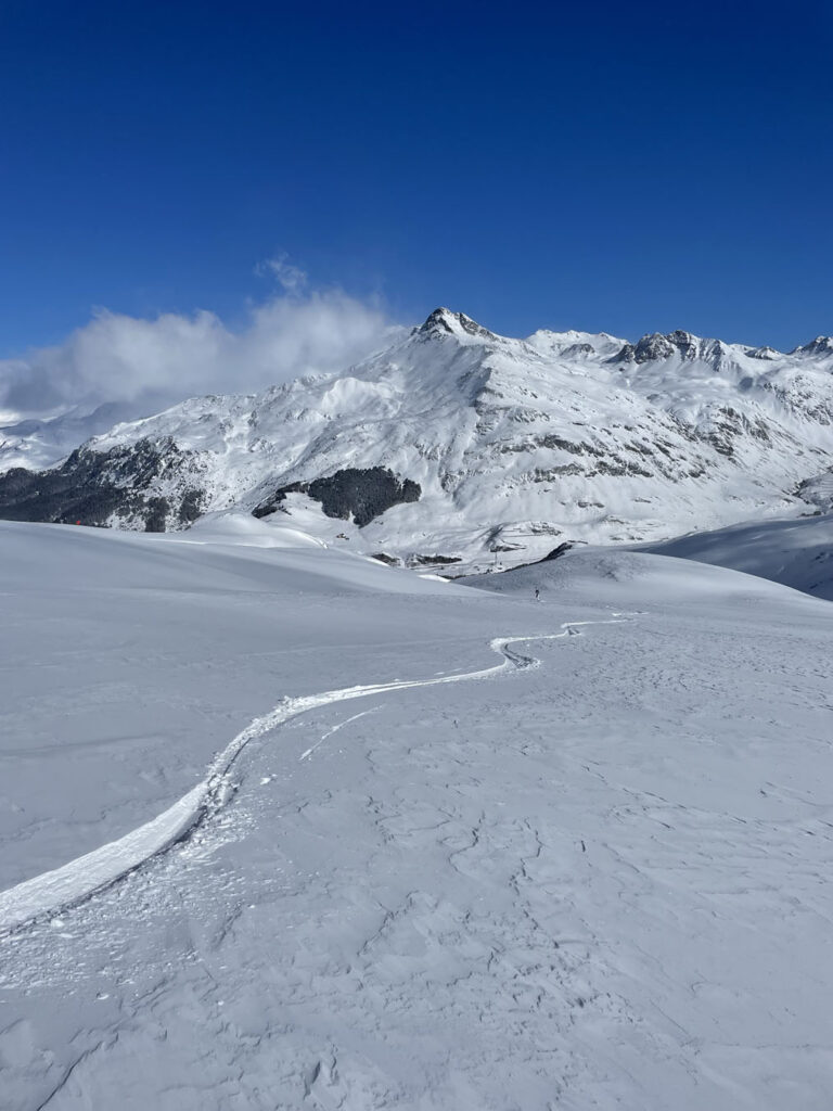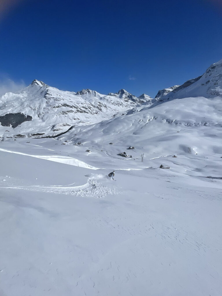 Adventurers and Freeriders will find Bivio to be a real gem of Bivio too as most stay away scared of the just 3 T-Bars. There is endless off-piste opportunity easily reached from each T-Bar, plus ski touring with a short hike. With fresh snow, you can explore low angle powder snowfields all day. We made laps and laps on a day with just 6 centimeters of soft snow, and matched only our own tracks each run. Fun!