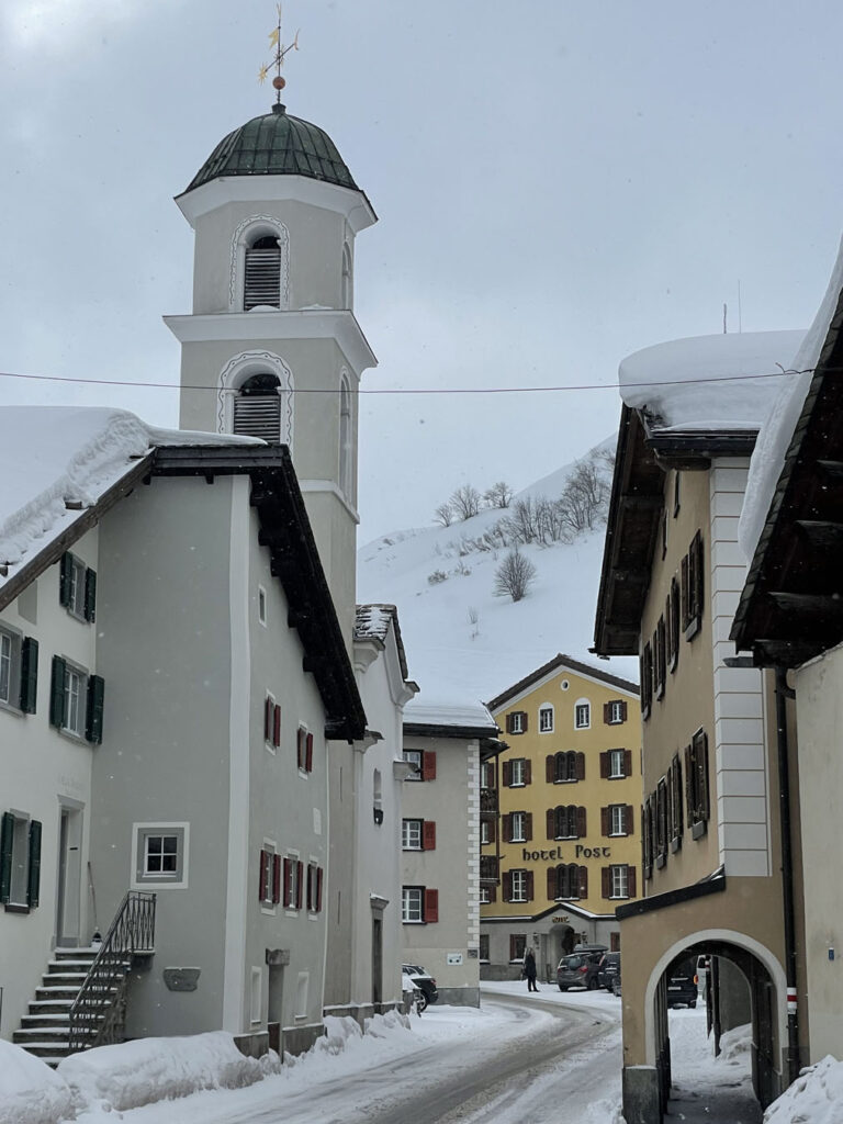 Back in the 70s and 80s there were lots of bars, weekenders from Zürich would stop here to party Friday and spend the night before heading to St Moritz for their glitzy weekend. Now there’s just Solaria’s Hotel bar, and The Hotel Post. If you spend the night in the sleepy town of Bivio, the biggest raucous is the church bells that ring 179 times (yes, we counted) at 6am each morning. Not quite time to wake for skiing, so it’s a quirky centuries-old tradition.
