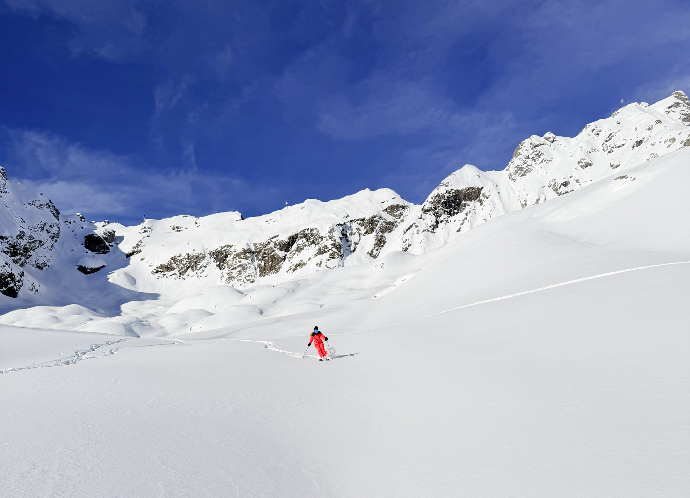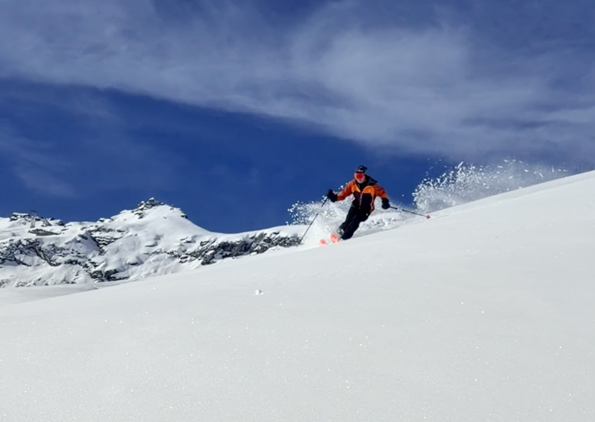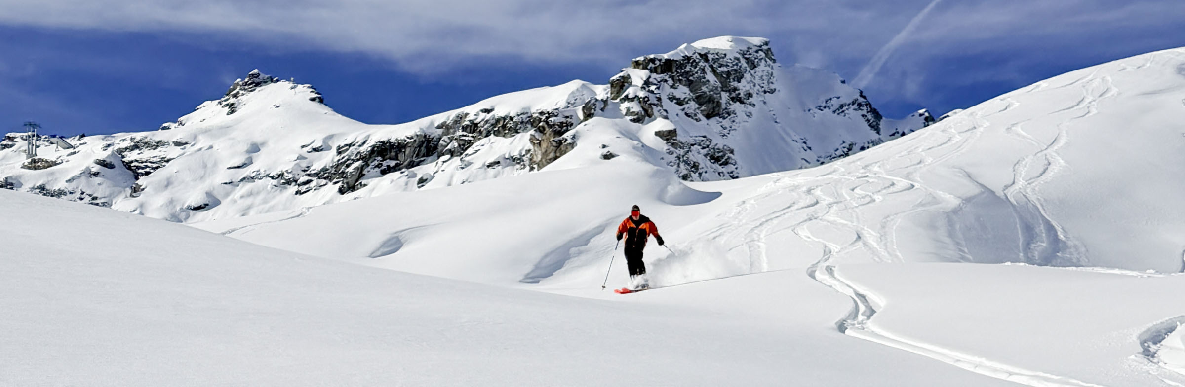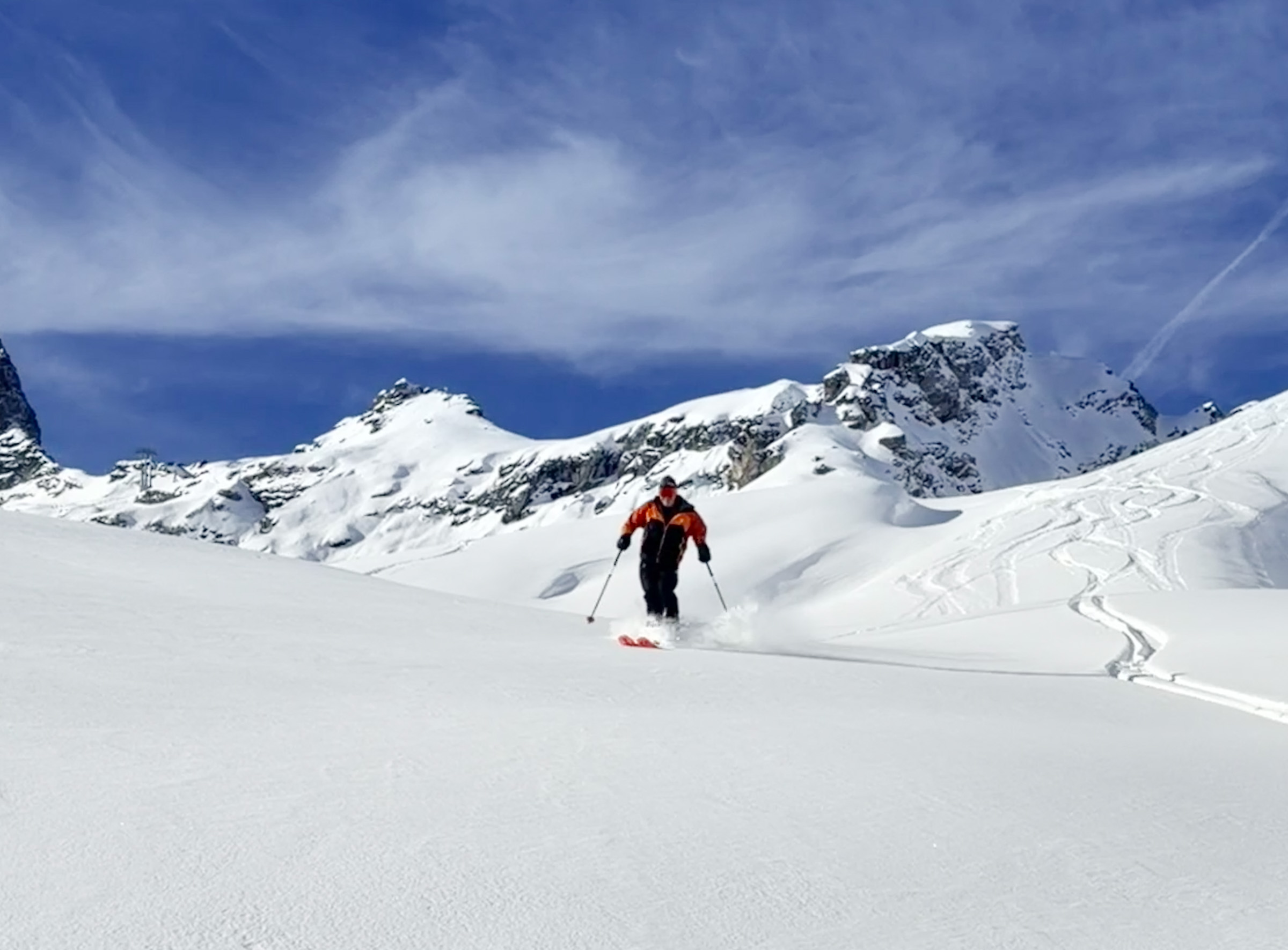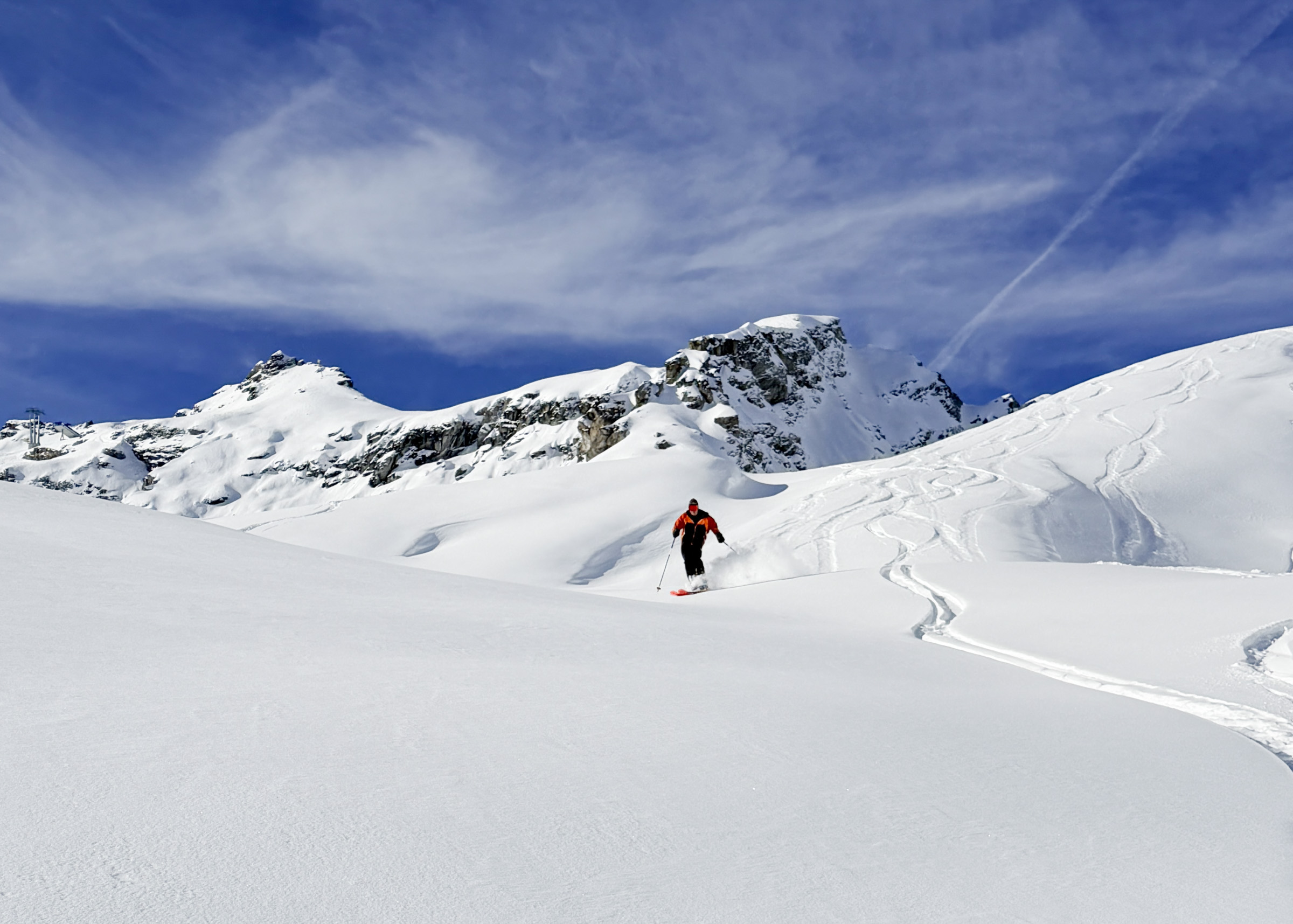 Lauchernalp has tons of easy to reach off piste from the summit gondola and the mid mountain triple and T-bar! However some of the eastern aspects are prone to slide, so hire a local guide to explore safely. A ski touring adventure with a little climb could deliver you to amazing nearby snowfields and valleys, with a trained Berg Fuhrer. Tragically, local pro snowboarder and Swiss Olympian, Ueli Kestenholz, died in an avalanche at Lauchernalp just days before our ski visit. So know before you go…