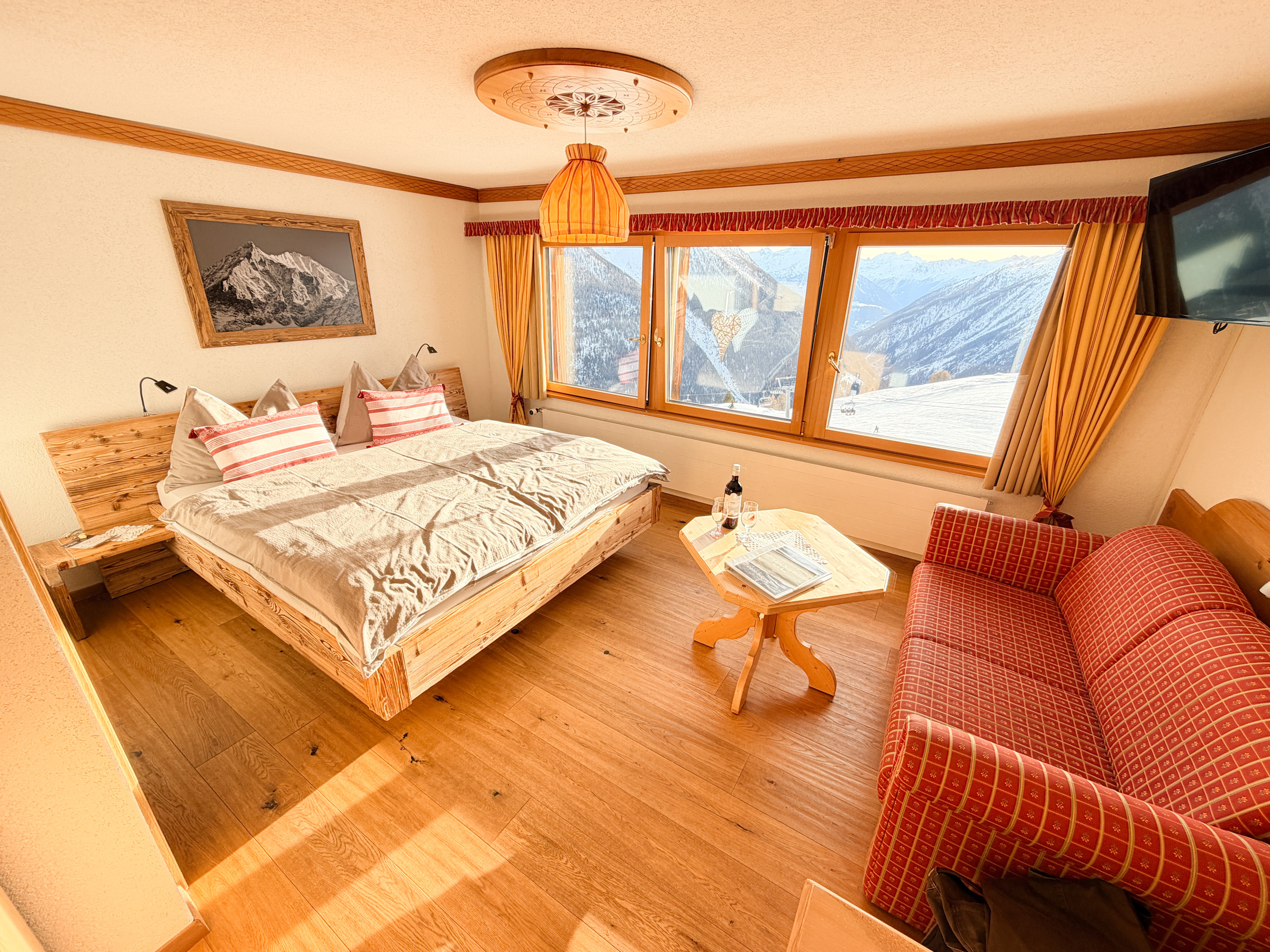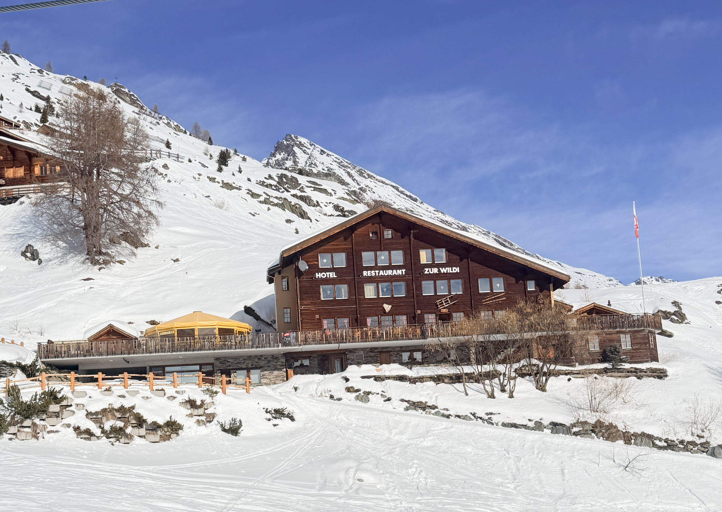 We liked this Lotschental ski valley so much, we stayed at the charming traditional Alpenhotel zur Wildiwith its panoramic outdoor deck and apres ski umbrella bar, neat alpine modern rooms. We loved our spectacular view from #9, 3rd floor. Zur WIldi has a friendly staff, and great food – breakfast included, plus evening dining a la carte including a raclette & fondue night! Sleeping on the mountain is so peaceful, aside from the groomers sweeping the slopes outside. The stars at night in the clear mountain air are stellar! And you can be first on the upper mountain ski trails and lifts in the morning after your yummy buffet breakfast. Zur Wildi made our Top Swiss Hotel list!