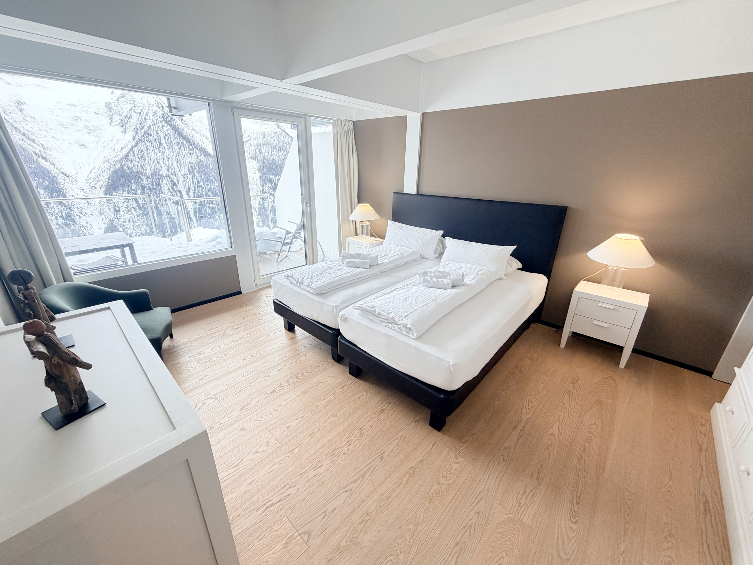 We also stayed at Residence Resort Lauchernalp which is a modern condo style one-bedroom just below the mountain village and the Tram. Our modern glacier view suite was well-appointed. We rode the Tram down and back to Wiler’s Volg market for staples to enjoy in our full kitchen. This condo apartment development is expanding across the hillside, promising more luxury apartments, and a spa, but the luxury resort is not completed yet, much construction and fulfillment to come (as of Jan 2026).