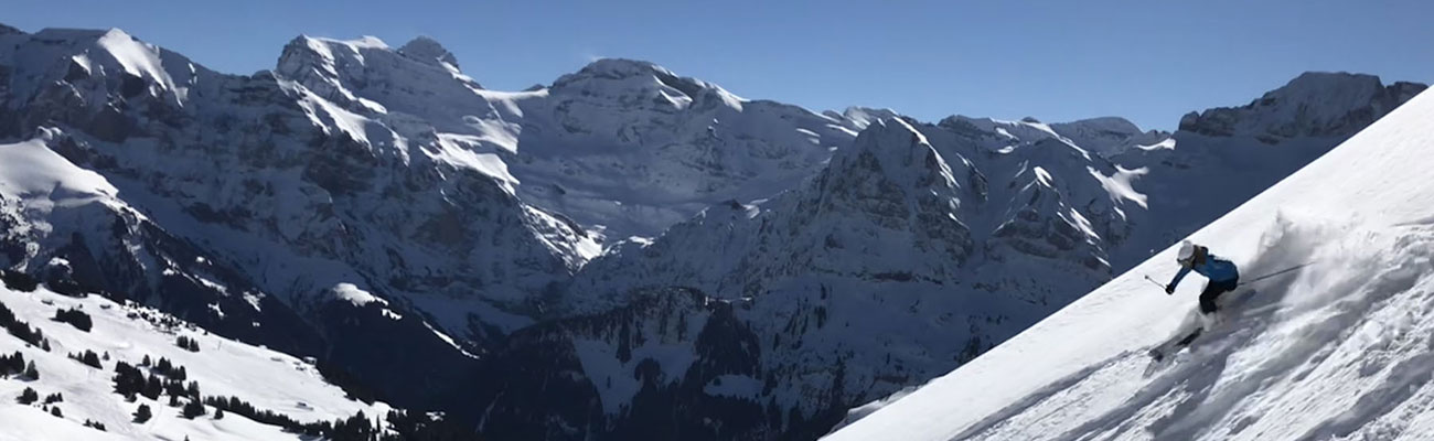 Skiing these French and Swiss Alps is at moderate elevation, not as high as most Alps, just 1,100 – 2300-meters, yet the scenery is magical – almost always in the shawdows of the Dents Du Midi – seven distinct summits soaring to 3,257-meters (10,680’) on the Swiss side.