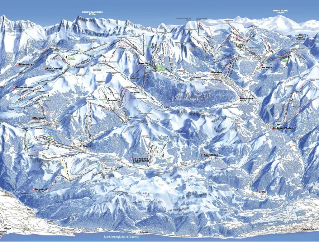 All Portes Du Soleil’s skiing is on one pass, an RFID card, so you can ski with ease from Switzerland to France, and back, no passport required. Its popular to tour the circuit, most do the PDS (Portes Du Soleil) tour clockwise, in a day, but we love skiing in a less structured tour and enjoying some of the best terrain and trails (see our Guide to the Best Ski Trails in Portes Du Soleil) not on the heavily skied circuit.